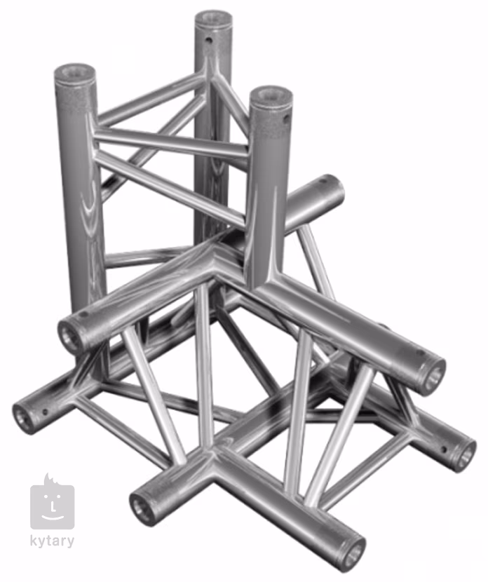 Duratruss DT33/2-T42-TD je rohový diel, ktorý spája štyri vetvy konštrukcie pod uhlom 90° (typ T+down). Systém rýchlospojok umožňuje rýchlu výstavbu, čo oceníte pri častej montáži a demontáži.