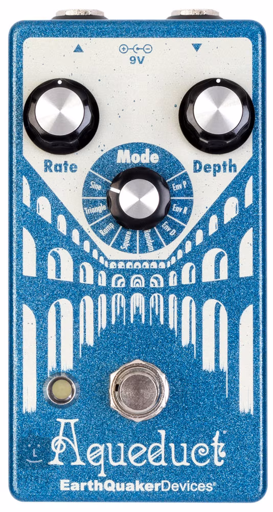 Aqueduct je vintage inšpirovaný pitch vibrato efekt s ôsmimi modulačnými módmi, Dokáže vám tak ponúknuť širokú škálu modulačných zvukov vystavených zmenám ladenia - pohodové až syntetizátorové zvuky s pulzným sonar charakterom, frekvenčná modulácia citlivá na dotyk, Pseudo-flange efekty, jemné zvukové vlny a extrémne zmeny intonácie a ohýbanie tónu, Všetko, čo si môžete vymyslieť, či už hudobné alebo úplne náhodné/experimentálne zvuky, Osempolohový prepínač dopĺňajú štandardné ovládacie prvky, ktoré určujú rýchlosť a intenzitu modulácie efektu,