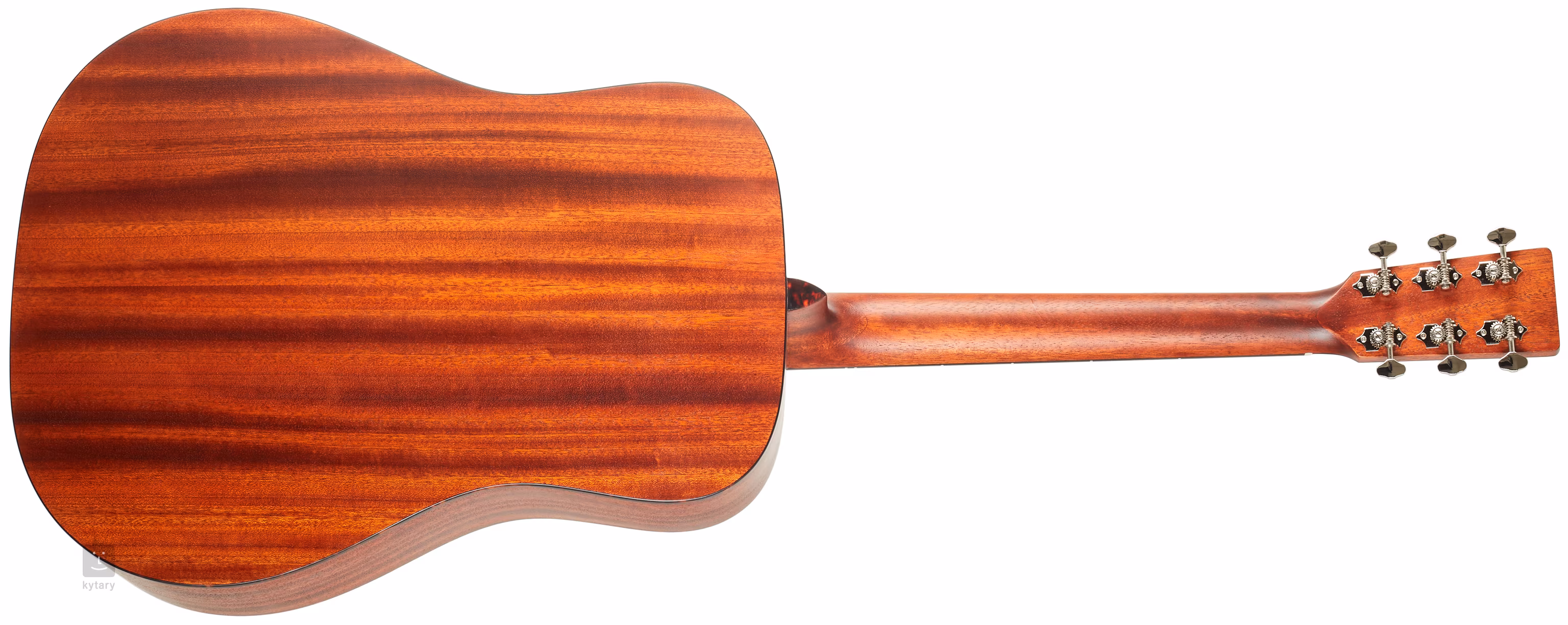 Struny držia niklové otvorené ladiace mechaniky (Open-Gear PingWell V93N 3+3) a ebenový hmatník nad kosteným pražcom. Pekné spracovanie podčiarkuje obojstranná väzba tela z imitácie korytnačiny, perleťová rozeta, pickguard z imitácie korytnačiny a logo firmy na hlavici.