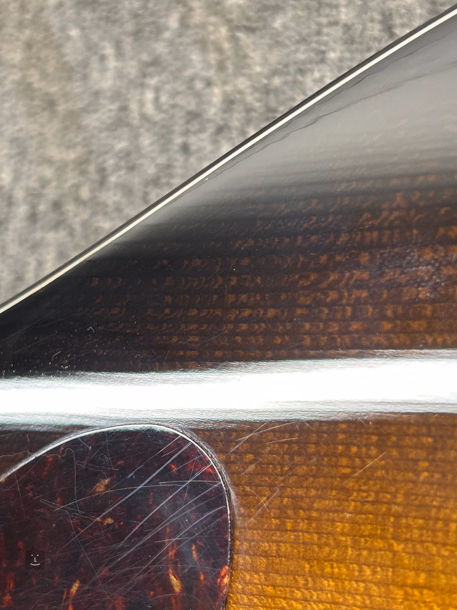 Struny držia niklové otvorené ladiace mechaniky (Open-Gear 3+3) a ebenový hmatník nad kosteným pražcom. Pekné spracovanie podčiarkuje obojstranná väzba tela z imitácie korytnačiny, perleťová rozeta, pickguard z imitácie korytnačiny a perleťové logo firmy na hlavici.