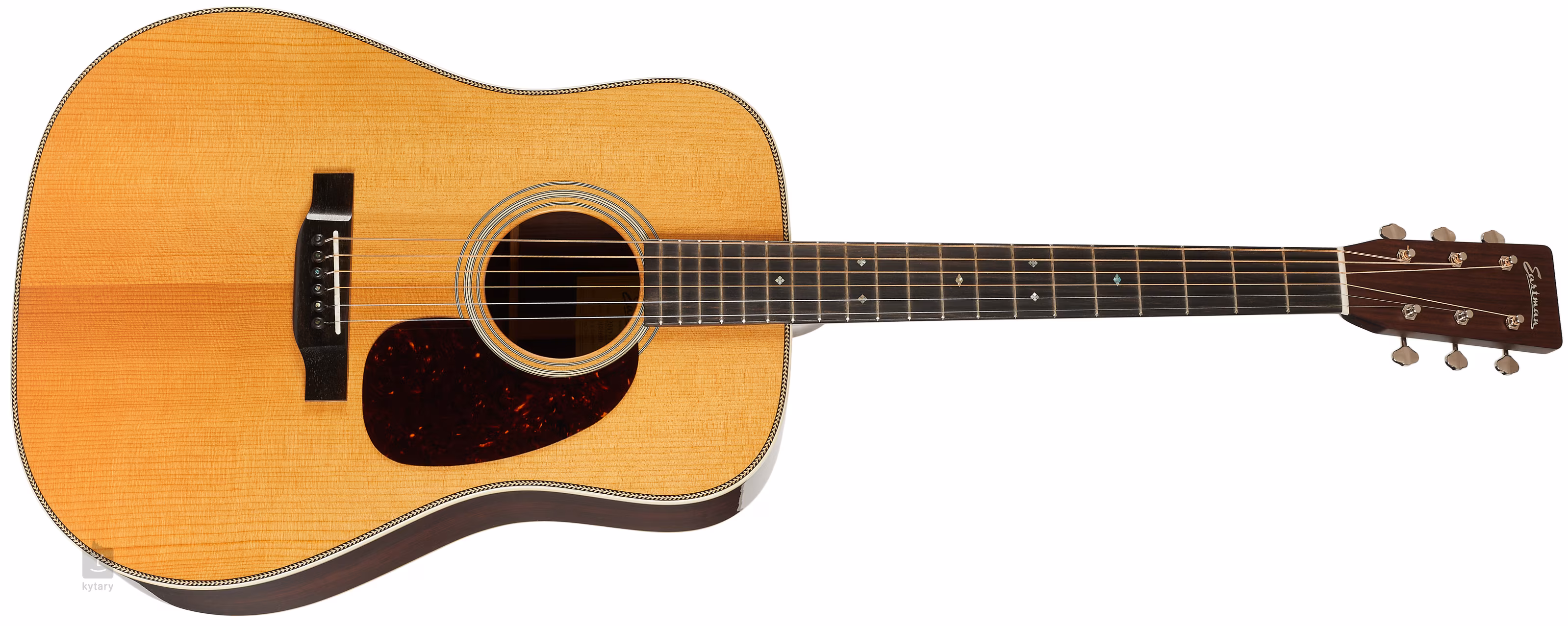 Eastman E20D-TC je celomasívna akustická gitara s veľkým rezonančným telom typu dreadnought. Predná doska gitary je vyrobená z tepelne vytvrdeného smreka Adirondack, zatiaľ čo zadná doska a luby sú z palisandru. Ebenový hmatník s 20 pražcami je prilepený k mahagónovému krku s pekným "C" profilom. Rezonanciu vrchnej dosky podporuje ručne redukované rebrovanie (Scalloped X), zatiaľ čo orientáciu na hmatníku uľahčujú perleťové polohové značky v tvare snehových vločiek (Abalone Snowflakes).