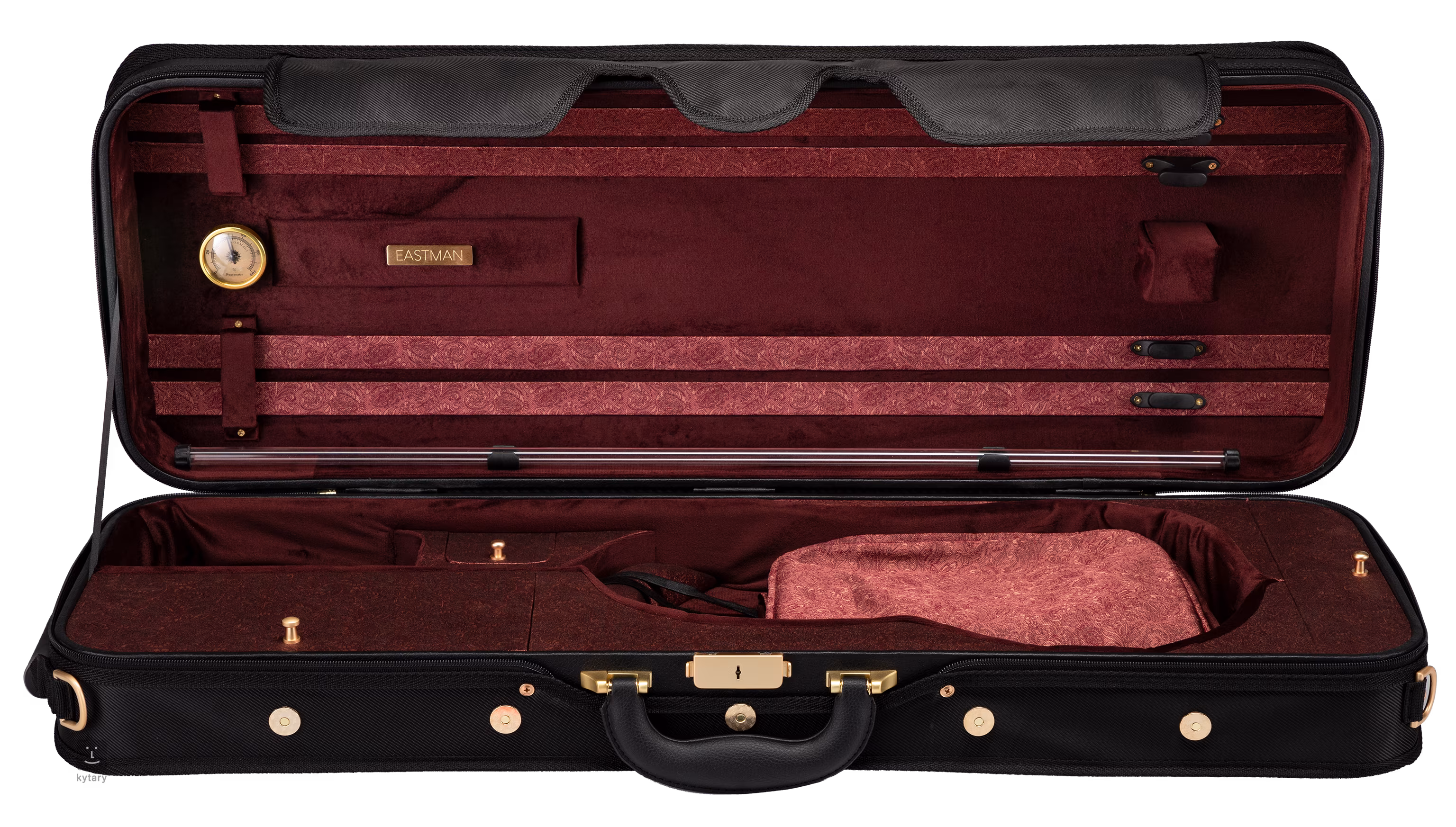 Eastman Advanced Oblong je kvalitní obal na housle, který využívá ochranné vlastnosti balistického nylonu, původně vyvinutého pro ochranu letců před střepinami a kulkami. Jeho těsně tkaná nylonová vlákna odpuzují vodu a odolávají protržení. Plná dešťová klopa a extra vnější polstrování poskytují vynikající ochranu před vnějšími vlivy. Pětivrstvá vnitřní dřevěná skořepina je odolná proti zkroucení nebo poškození. Obal je v italském stylua a nabízí vnitřek potažený sametem, tři přihrádky na příslušenství, čtyři držáky na smyčce a zabudovaný vlhkoměr.
