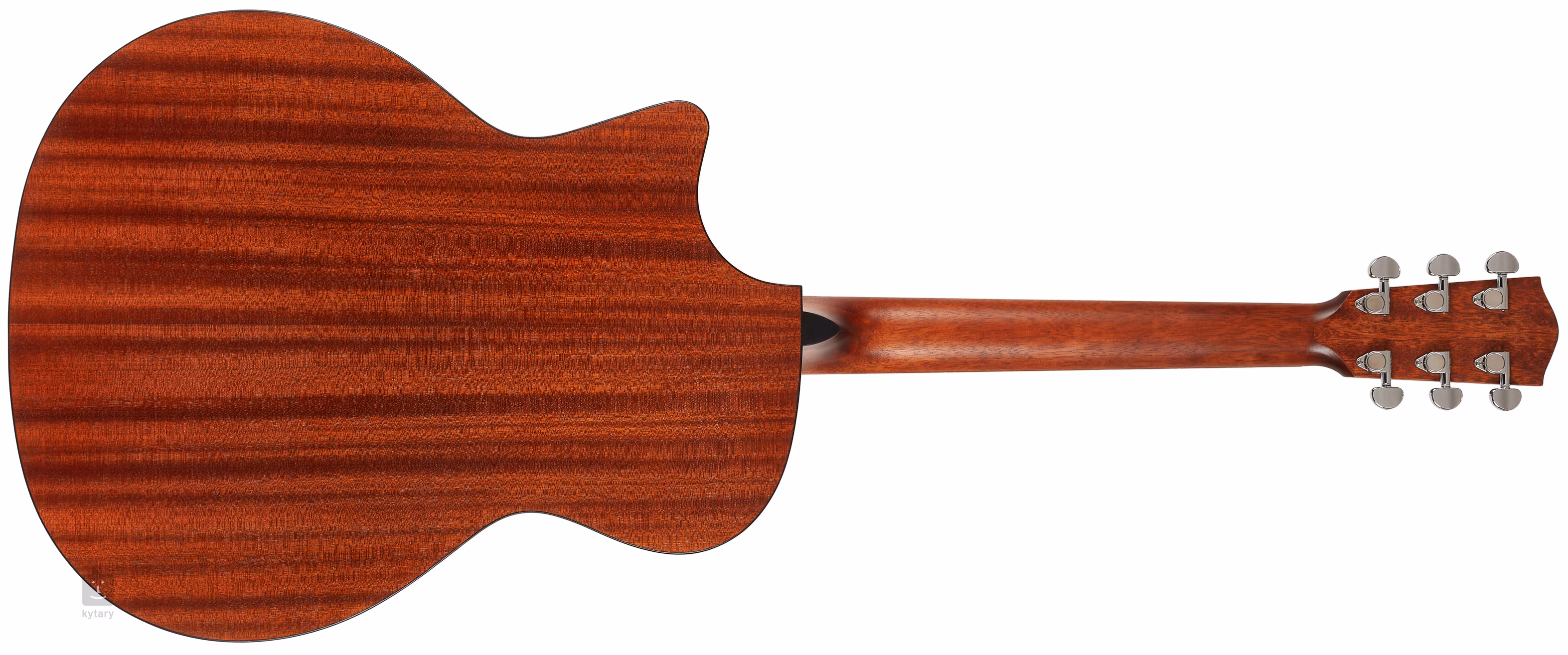 Struny držia v niklových ladiacich mechanikách a palisandrovom hmatníku prostredníctvom kosteného pražca. Pekné spracovanie podčiarkuje obojstranné obvodové lemovanie tela, perleťová rozeta (Abalone), čierny pickguard a firemné logo na hlavici.