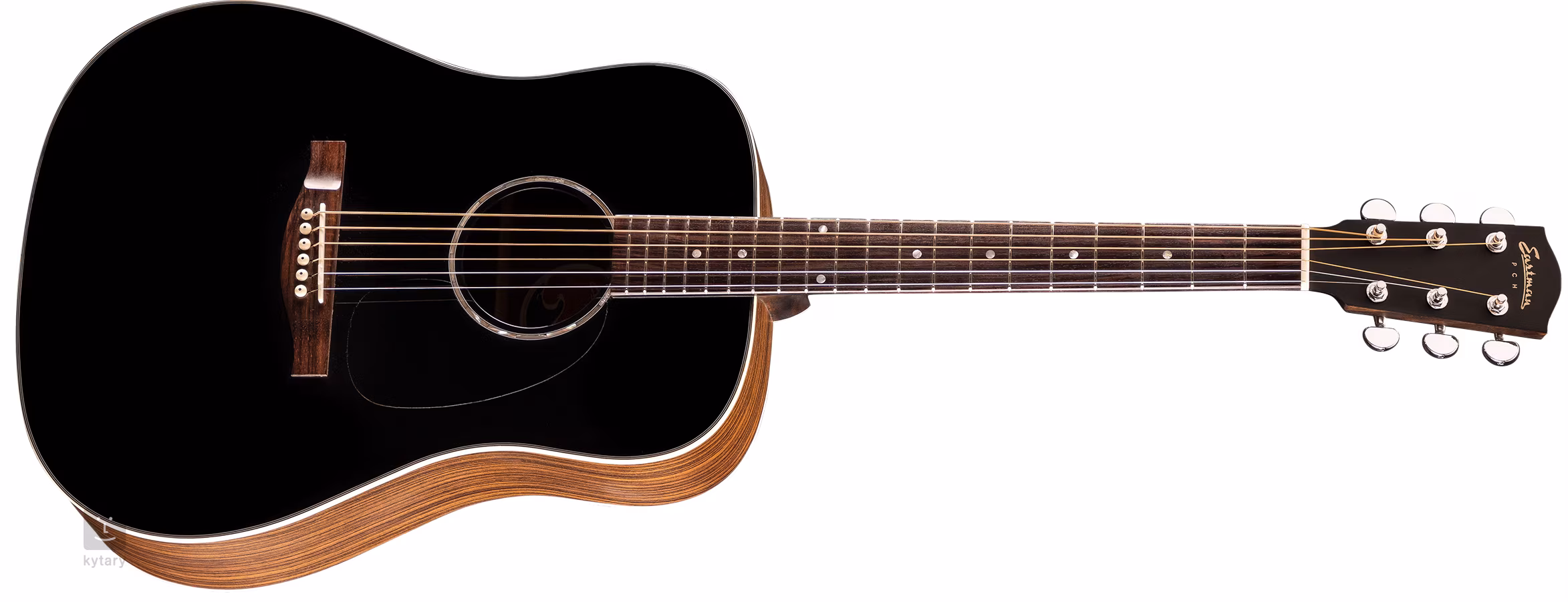Akustická gitara Eastman Dreadnought PCH2-D-BK je súčasťou série "Pacific Coast Highway", ktorá ponúka cenovo dostupnejšie nástroje s polomasívnou konštrukciou.
