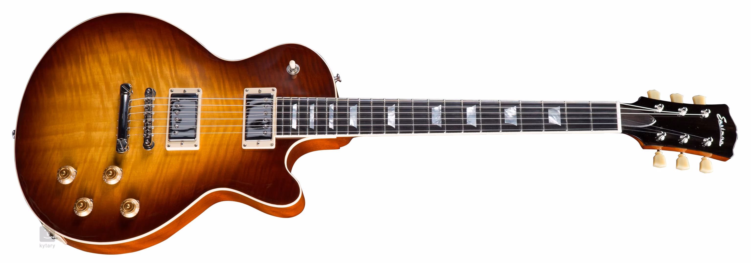 Humbuckery Seymour Duncan '59 s vintage výstupom dodávajú gitare klasický tón a pocit humbuckerov PAF, ktorý oceníte pri blues alebo rocku, t.j. zvuk kobylkového snímača s jasnejšími výškami a trochu väčšou kompresiou, než ponúkajú snímače PAF starej školy, a teplý, plný zvuk krkového snímača. Charakter zvuku môžete upraviť pomocou štandardných ovládacích prvkov. Struny sú uchytené v ladiacich mechanikách Gotoh a cez kobylku Gotoh GE-104B-NI Relic v strunníkoch rovnakej značky. Pekné spracovanie podčiarkuje imitácia slonovinovej vrchnej dosky a hmatníka a perleťové firemné logo na hlavici.