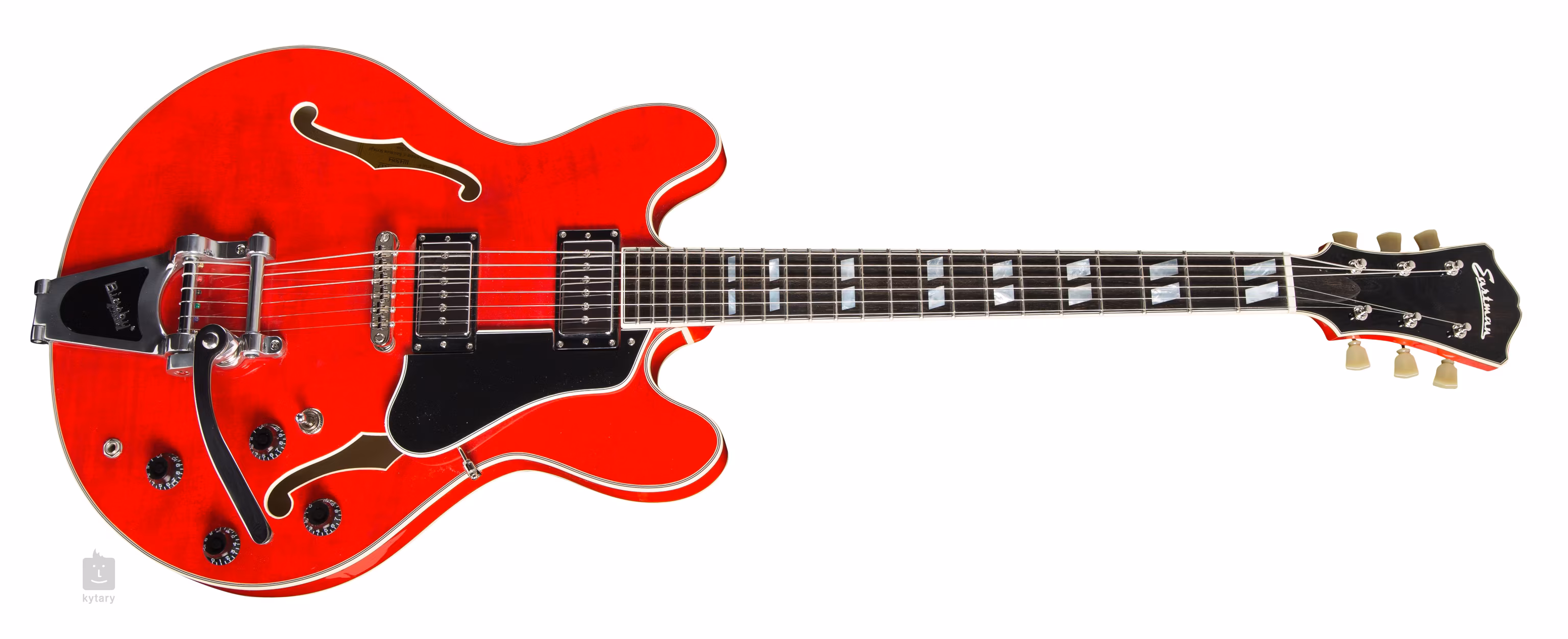 Eastman T486B-RD je elektrická gitara s polodutým telom v štýle populárnych modelov ES-335 "thinline". Ide o luxusnejšiu "step-up" verziu základného modelu T386.