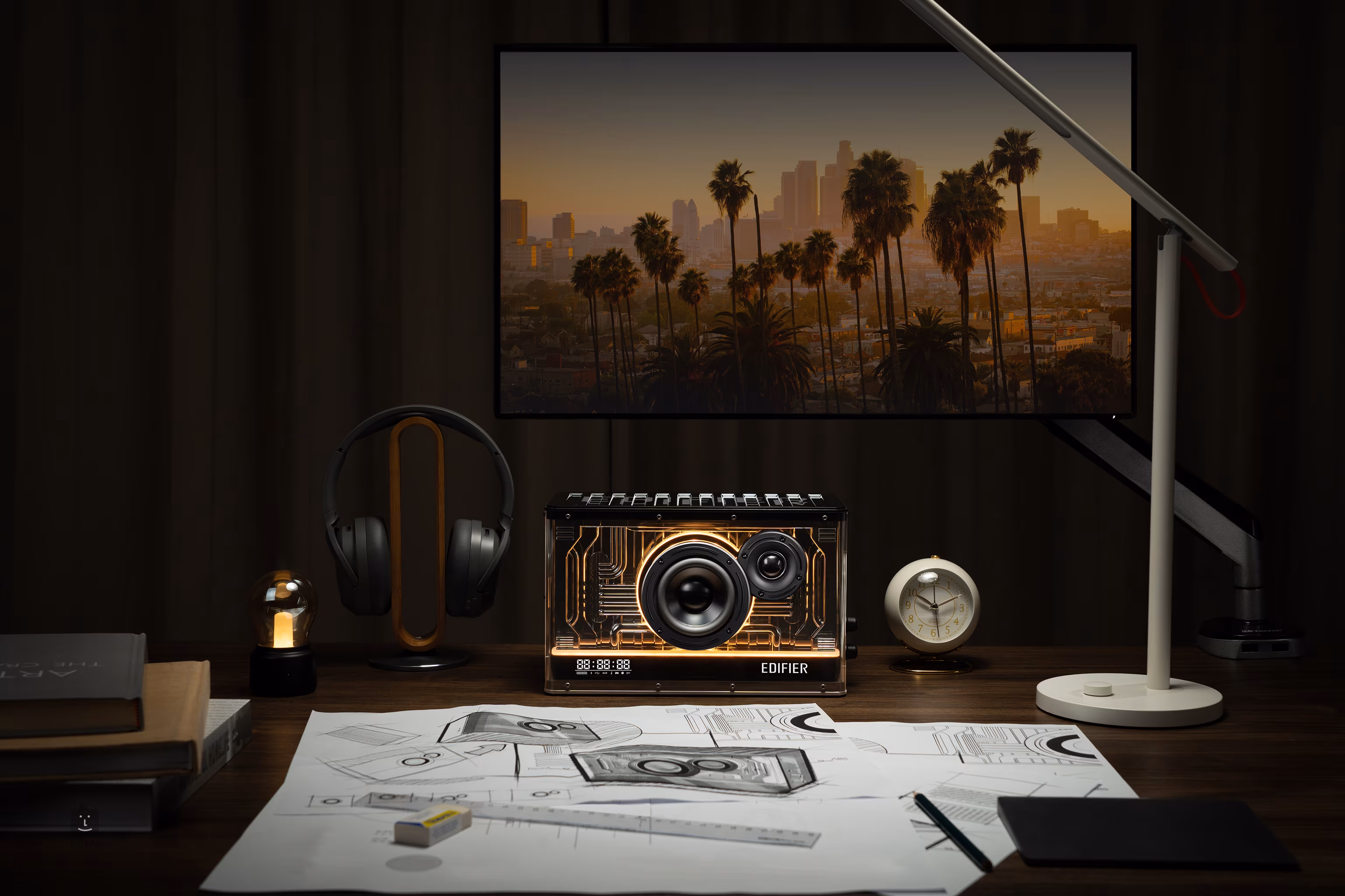 Vyberte si z množstva prednastavených svetelných efektov. Pomocou aplikácie Edifier Connect si môžete prispôsobiť aj vlastné svetelné efekty. Rozsvieťte svoj stôl a zlepšite si náladu.