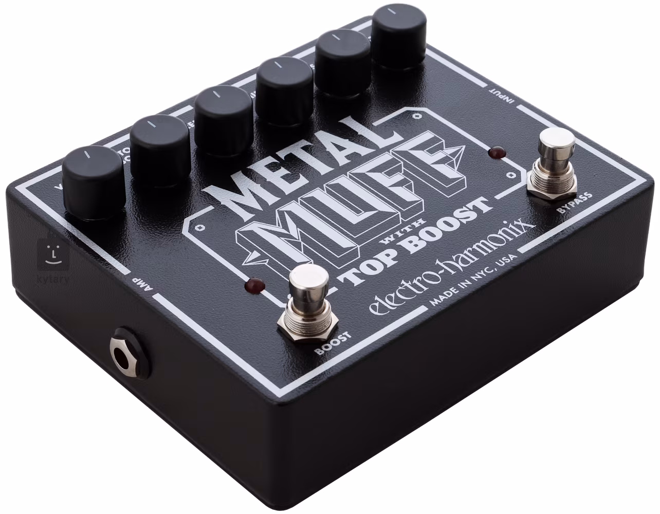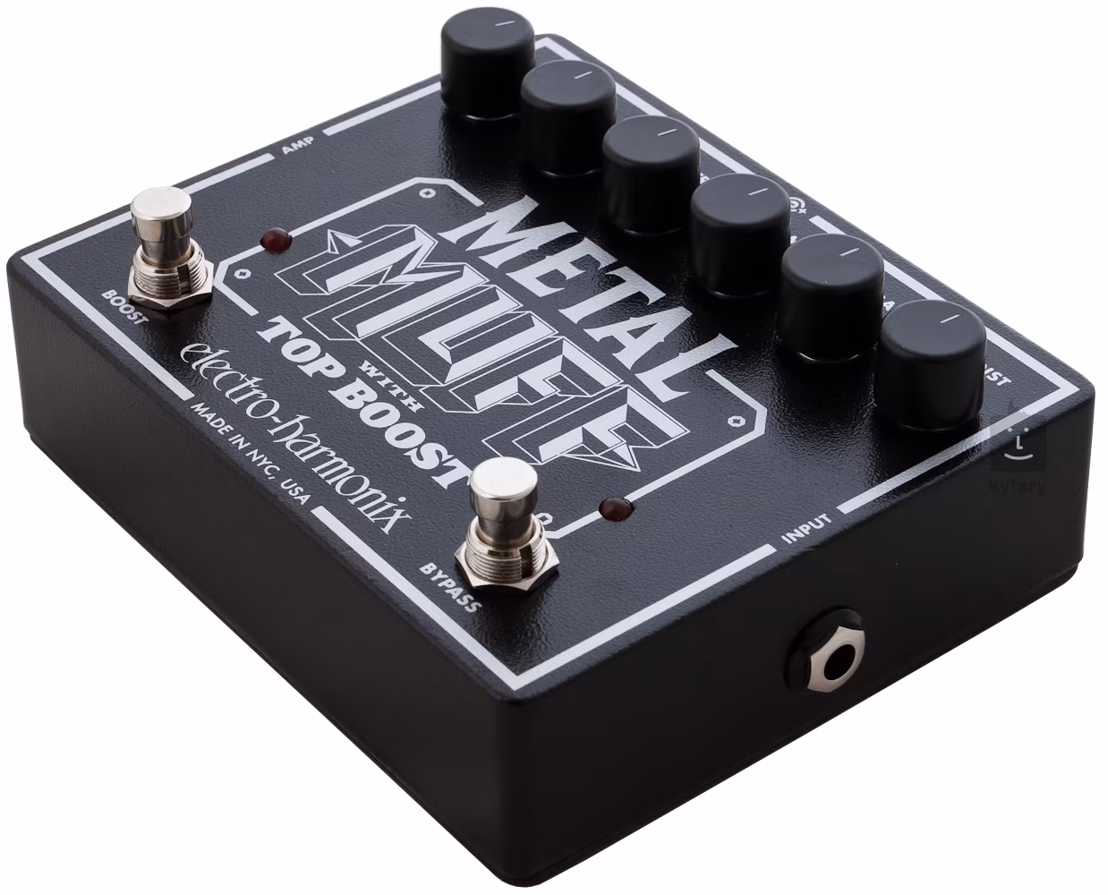 Electro Harmonix Metal Muff je hi-gain distortion pedál s pridaným samostatným obvodom boosteru. Názov jasne naznačuje, pre koho je pedál určený - tento DJ nehrá jazz ani oldies rock, iba metal. Krabička, podobne ako mnoho iných pedálov EHX, ide cestou relatívnej jednoduchosti, kde máte k dispozícii trojpásmový EQ, ovládač výstupnej hlasitosti, ovládač úrovne skreslenia a potenciometer Top Boost, ktorého nastavenie určuje nárast hlasitosti pri zapnutí sekcie Boost. Čo viac si môžete priať.