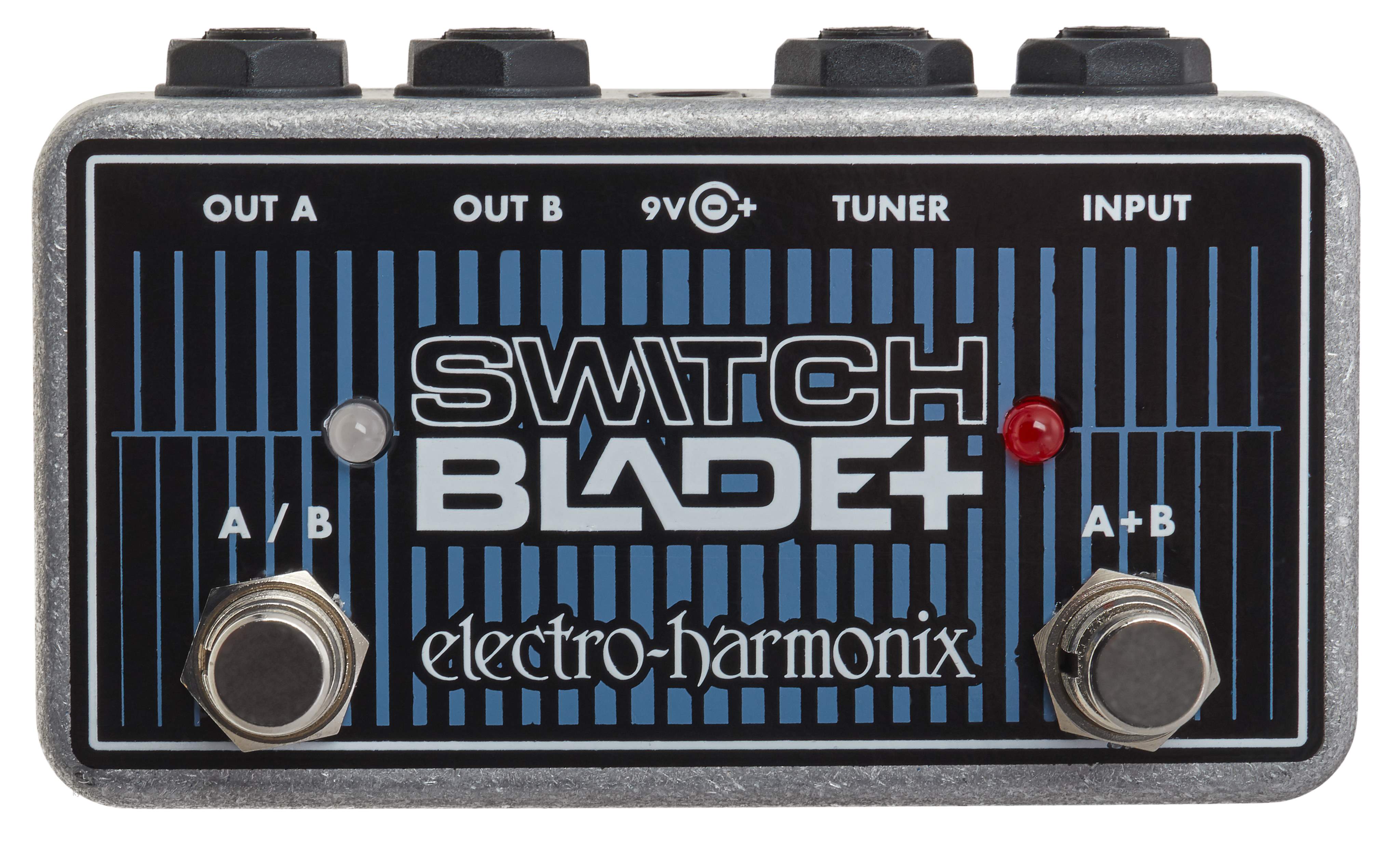 EHX Switchblade Plus ponúka možnosť prepínať medzi výstupmi A/B alebo ich používať súčasne A+B. Môžete mať gitaru zapojenú do dvoch aparátov a rýchlo medzi nimi prepínať alebo používať oba súčasne. Prepínač je vybavený aj vstupom pre ladičku.