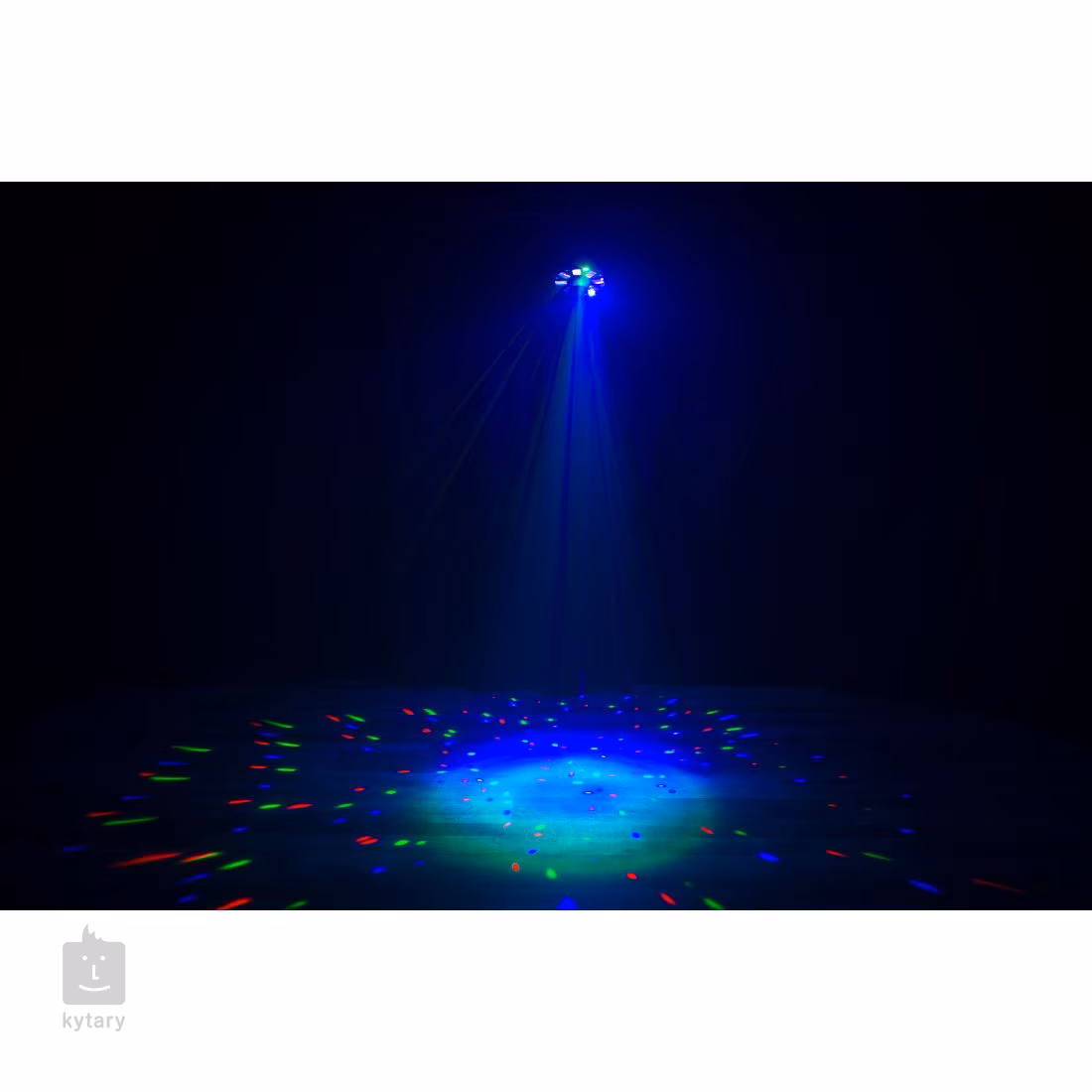 Na ovládanie zariadenia môžete použiť štandardný protokol DMX-512 s 9 ovládacími kanálmi, automatický režim s radom prednastavených svetelných šou, režim ovládania zvukom s nastaviteľnou citlivosťou mikrofónu alebo režim primárneho/sekundárneho ovládania, pomocou ktorého môžete synchronizovať viacero zariadení dohromady. Zadný panel jednotky potom ponúka prehľadný ovládací panel s displejom a tlačidlami pre manuálne nastavenia, 3-pinové konektory DMX pre bezproblémový prenos signálu DMX a napájacie konektory IEC. Súčasťou balenia je držiak na montáž na nosnú konštrukciu, napájací kábel a bezpečnostný kľúč pre laser.