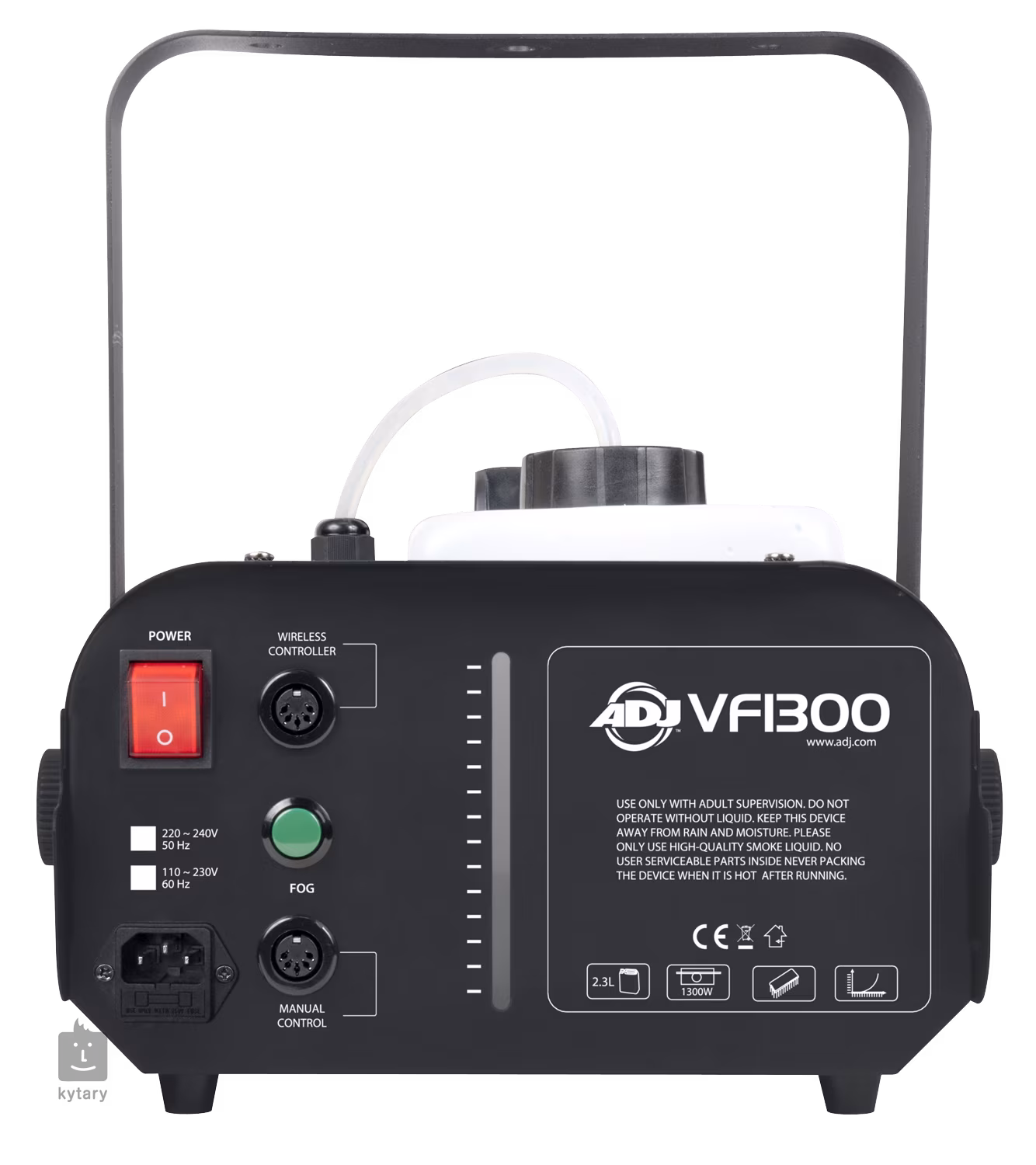 Vďaka nádrži s objemom 2,3 l a indikátorom hladiny je model VF1300 EP navrhnutý pre maximálne pohodlie. Súčasťou balenia je káblové diaľkové ovládanie VEP5R a bezdrôtové diaľkové ovládanie VFEPW2, ktoré uľahčujú ovládanie stroja. Bezpečnostné prvky, ako napríklad snímač nízkej hladiny hmly na ochranu čerpadla, zdôrazňujú bezpečnosť pri používaní. Ako vhodná náplň poslúži akákoľvek hmlovacia kvapalina na báze vody.