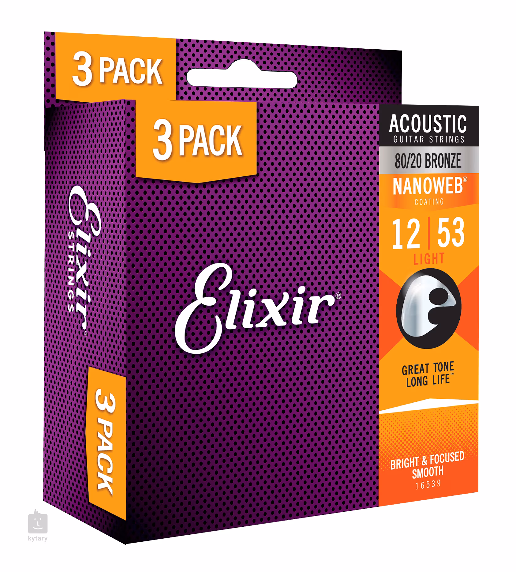 Struny Elixir sú známe svojou mimoriadne dlhou životnosťou, ktorej je veľmi ťažké konkurovať. Vďaka špeciálnemu povlaku sú odolné proti korózii, vlhkosti, nečistotám a potu, takže si dlho zachovávajú jasný a prenikavý tón. Zvukovo ide o veľmi silné, zvonivé a rezonujúce struny, ktoré vyniknú na akomkoľvek pódiu alebo nahrávke. Struny s označením 80/20 Bronze majú vinutie vyrobené z bronzovej zliatiny (80/20), ktorá im dodáva veľmi prenikavý šmrnc a zvonivý charakter – výsledkom je zvuk, v ktorom dominujú vysoké frekvencie.