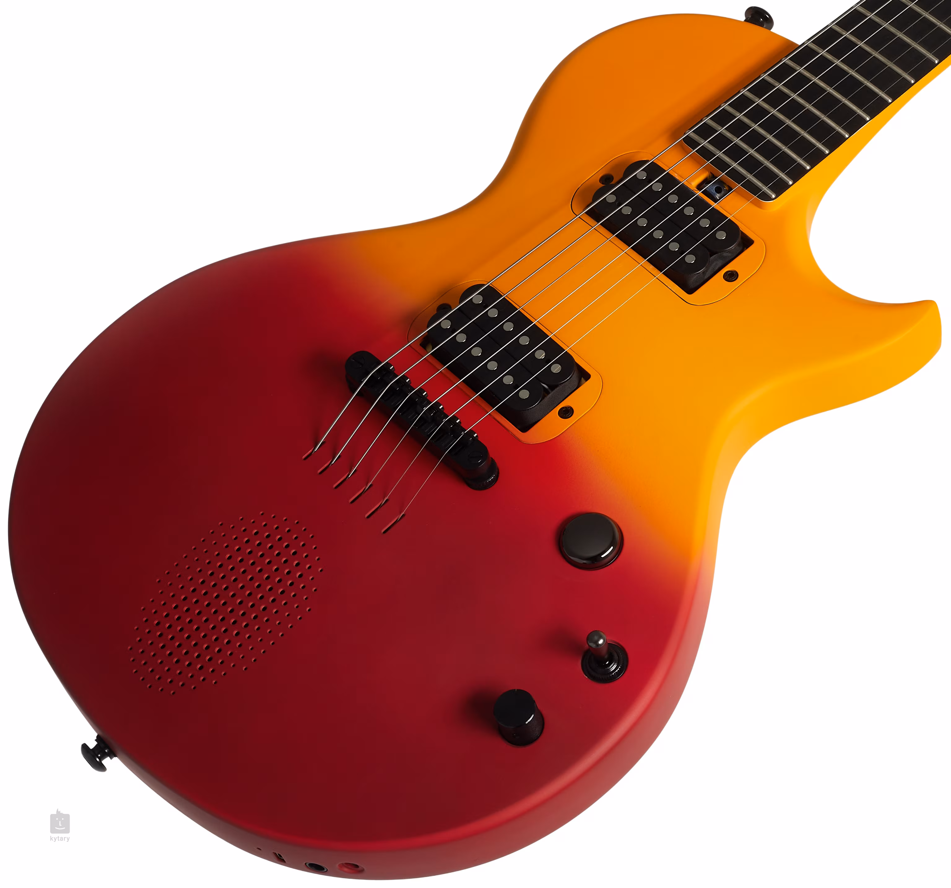 Enya Nova Go Sonic Volcano Red je inteligentná elektrická gitara v dizajne single-cut LP s konštrukciou z uhlíkového kompozitu, vstavaným 10-wattovým reproduktorom a Bluetooth pripojením, digitálnym systémom ES1 Pro Smart so štyrmi prednastavenými zvukmi (Clean, OD, Crunch, Lead), vstavaným nabíjaním batérie a nahrávaním na cestách cez USB a výstup pre slúchadlá. Samozrejme, v aplikácii Enya Music App je k dispozícii aj možnosť podrobnejšej úpravy a prístup k ďalším funkciám (napríklad gitarovým efektom). Konečne elektrická gitara, na ktorú môžete hrať bez zapojenia takmer kdekoľvek.