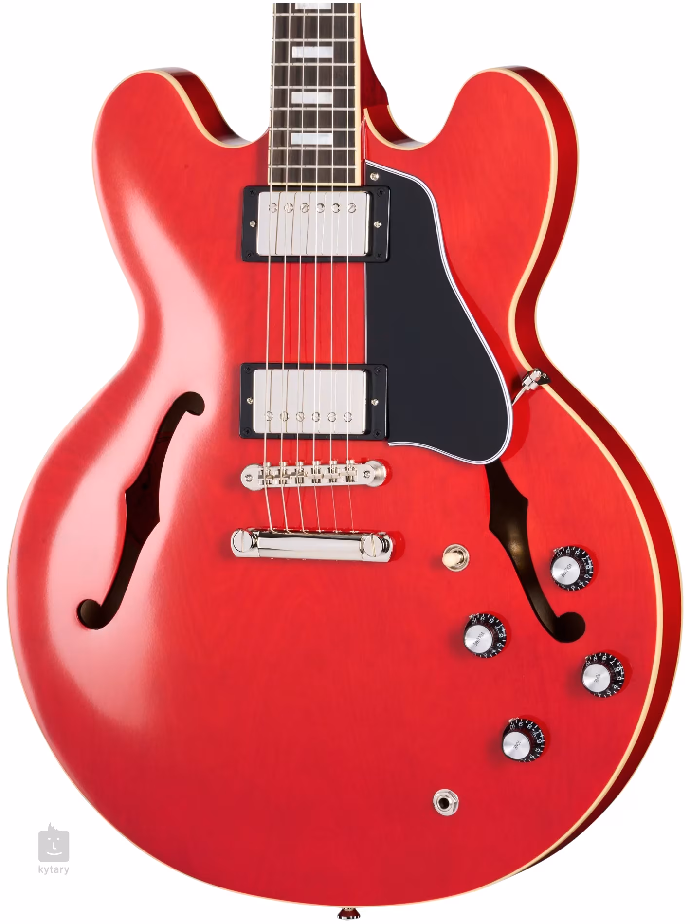 Dva v USA vyrobené nevoskované humbuckery Gibson Custombucker s magnetmi Alnico 3 poskytujú gitare teplý autentický zvuk snímačov PAF, ktorý oceníte v jazze, rocku, blues, country a ďalších hudobných štýloch. Snímače sú ručne pripájané k potenciometrom hlasitosti a tónovej clony. Struny sú cez nulový pražec Graphtech upevnené v ladiacich mechanikách Epiphone Deluxe a ABR-1 TOM kobylke a hliníkovom strunníku. Štýlovú úpravu podčiarkuje perleťové (mother-of-pearl) logo značky a intarzia na hlave gitary v tradičnom dizajne „open book“, čierny päťvrstvový pickguard v tvare ES-335 a niklový hardvér.