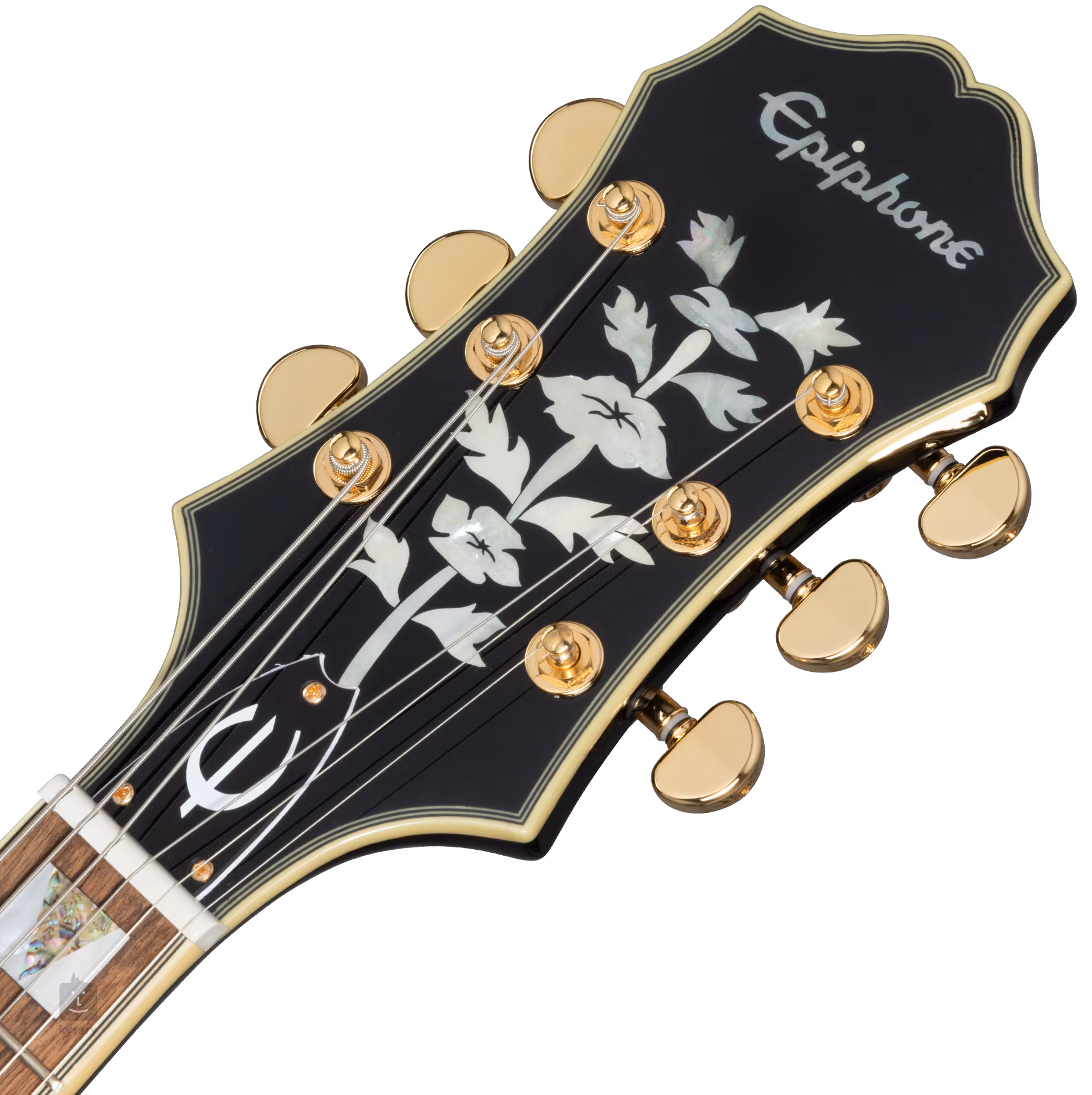 Dva vlastné humbuckery s magnetmi Alnico V dodávajú gitare teplý čistý zvuk, ktorý oceníte samostatne alebo v spojení s gitarovými efektmi. Na úpravu zvuku slúžia dva potenciometre hlasitosti, dva tónové ovládače a trojpolohový prepínač snímačov. Struny sú uchytené v ladiacich mechanikách Wilkinson a na nastaviteľnom hmatníku z dreva pau ferro v systéme strún vo vintage štýle (Frequensator Split Trapeze). Rafinovaný vzhľad gitary podčiarkuje lemovanie tela, hmatníka a obvodu hlavy, zlatý hardvér, pickguard z imitácie korytnačky a perleťové logo spoločnosti a intarzia "strom života" na hlave.