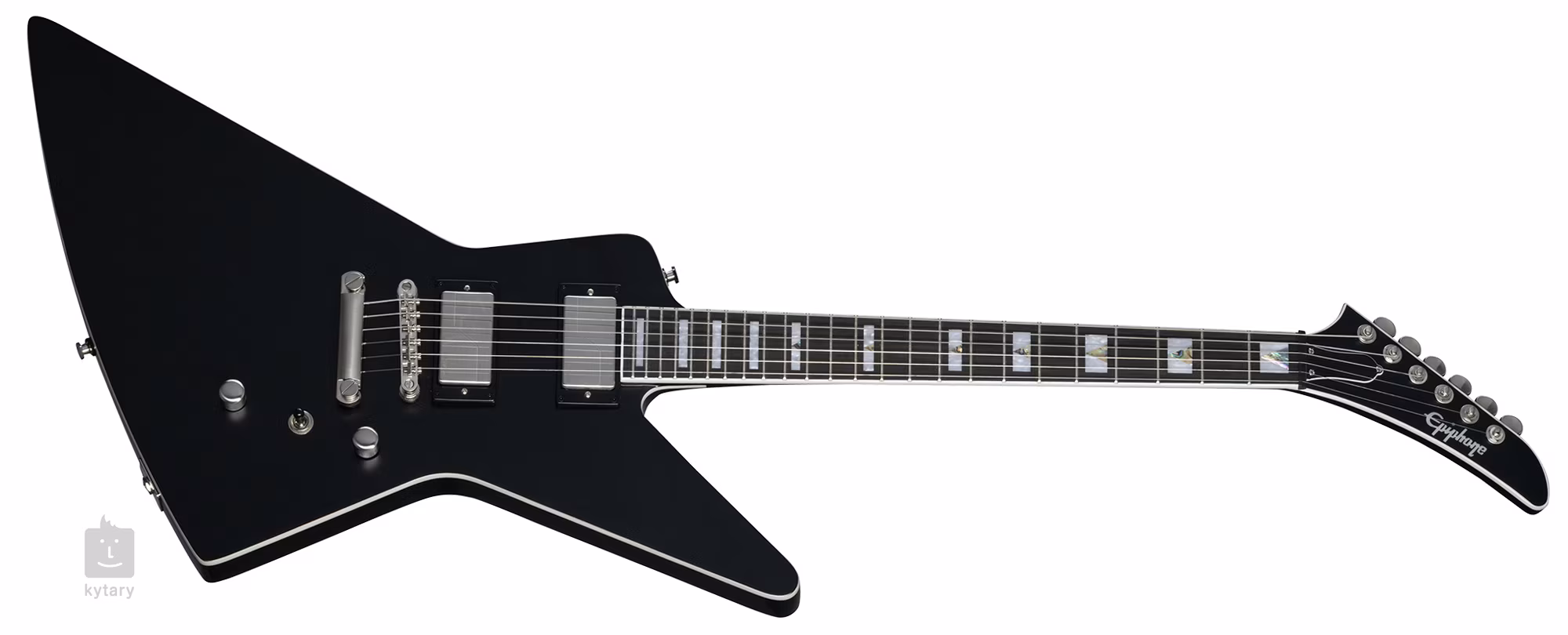 Epiphone Prophecy Extura je drobně modifikovaný Explorer s užším pasem a hlubším výřezem kytary Gibson Futura. Mahagonové tělo modelu Extura Prophecy Aged Jet Black Metallic kryje dýha z fládrovaného javoru kvality AAA. Asymetrický Slim Taper profil mahagonového krku poskytuje levé ruce potřebný komfort pro snadný a rychlý pohyb na hmatníku. Samotný ebenový hmatník je osazen čtyřiadvaceti pražci velikosti Jumbo. Orientaci na hmatníku usnadňují polohové bloky s vloženými kusy z pravé perleti (Abalone).