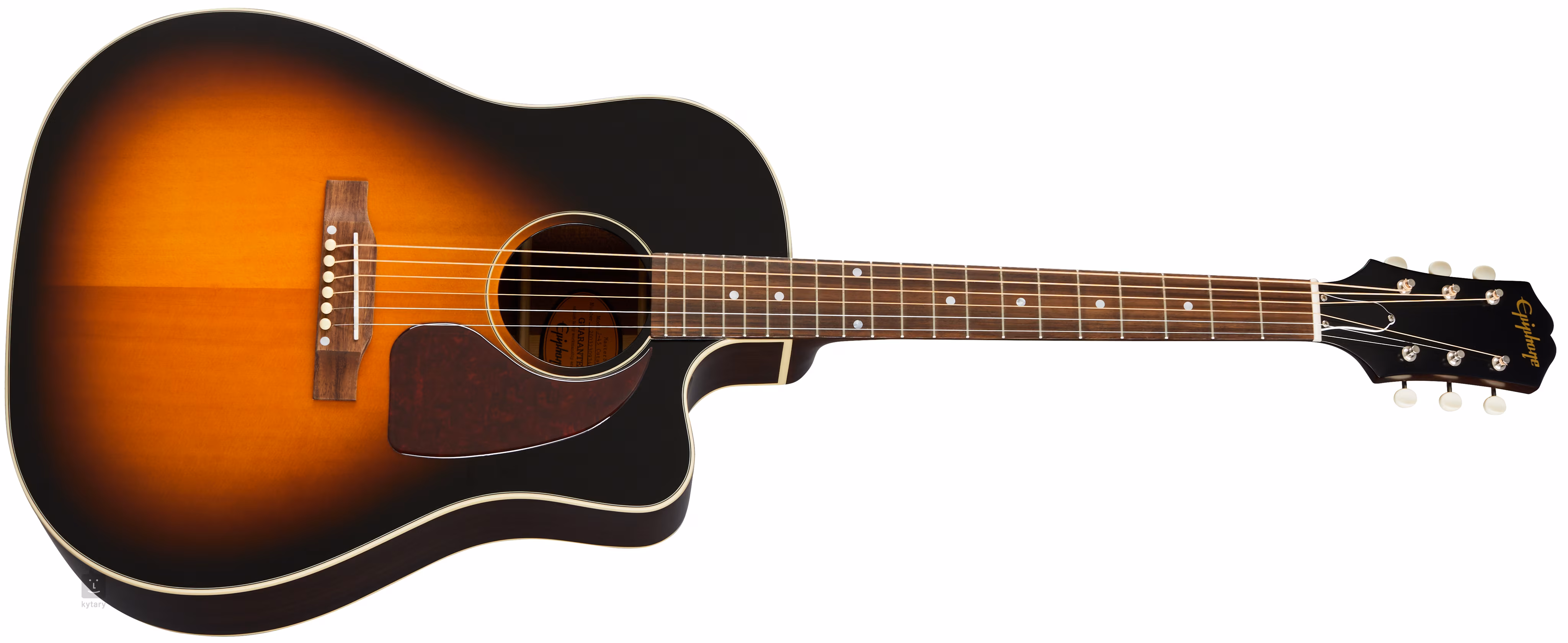 Struny sú ukotvené v patentovaných firemných ladiacich mechanikách s kolíkmi z imitácie slonoviny a fíkovom hmatníku nad kosteným pražcom a sedlom. Pekné spracovanie podčiarkuje pickguard Teardrop z imitácie korytnačiny, obojstranná väzba tela z imitácie slonoviny doplnená čiernymi linkami, niklový hardware a vrchná farebná úprava.