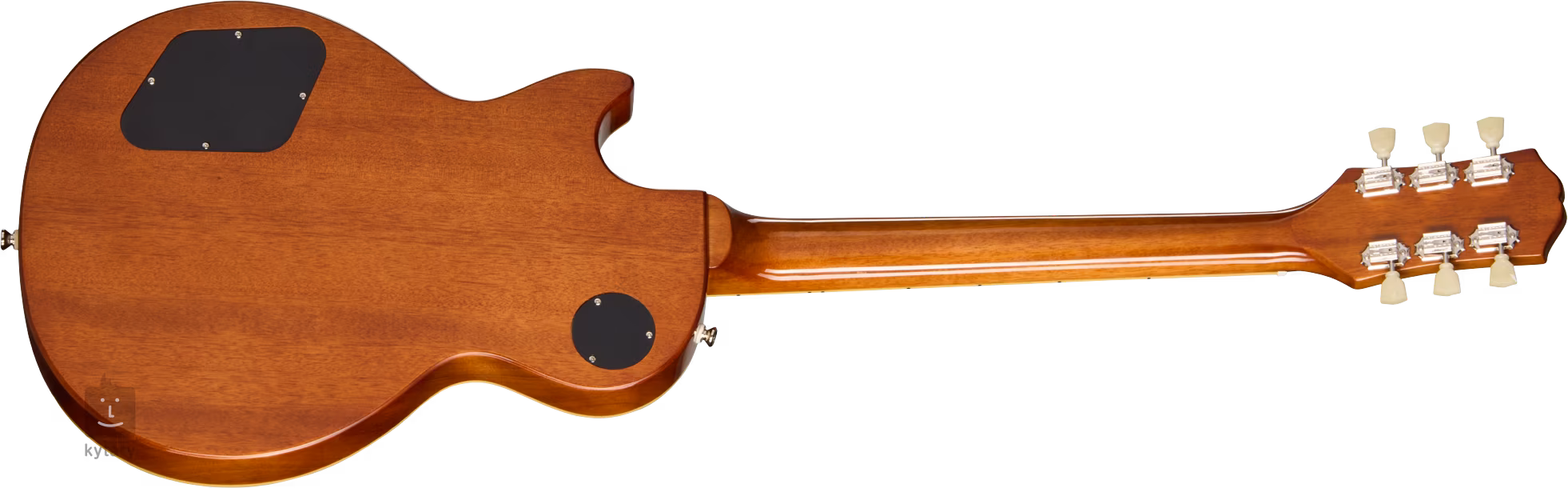 Struny sú ukotvené v ladiacich mechanikách Vintage Deluxe a cez nastaviteľný mostík LockTone TOM v koncovke. Štýlový dizajn podčiarkuje svetlé lemovanie tela a hmatníka, krémový pickguard a perleťové logo spoločnosti na hlave (perleť).