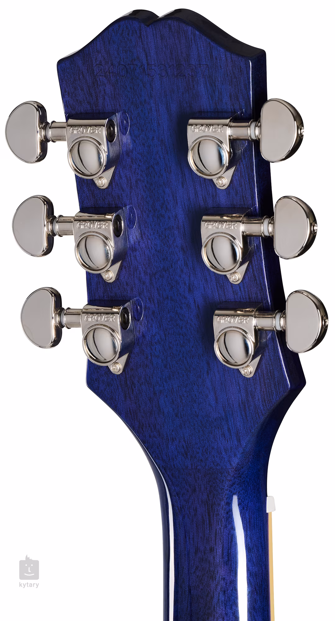 Struny sú uchytené v kvalitných ladiacich mechanikách Grover Rotomatic s kolíkmi Kidney a cez nastaviteľnú kobylku LockTone TOM v strunníku. Štýlový dizajn podčiarkuje svetlé obvodové lemovanie tela a hmatníka a krémový pickguard.