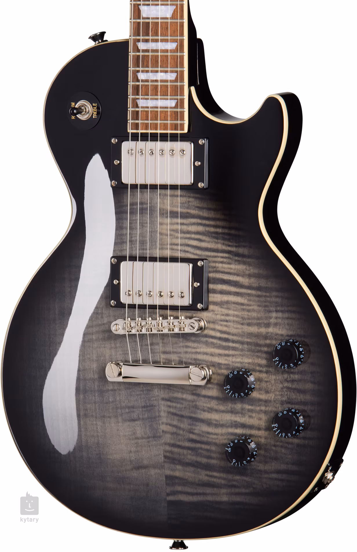 Dva firemné humbuckery s keramickými magnetmi poskytujú gitare plný, šťavnatý zvuk, ktorý oceníte v rocku a ďalších hudobných žánroch. Kontúry zvuku upravíte pomocou štandardných ovládačov. Struny sú upevnené vo firmových die-cast mechanikách a cez kobylku LockTone TOM v struníku. Štýlovú úpravu podčiarkuje obvodová lemovka vrchnej dosky a hmatníka a firemné logo na hlavici gitary.