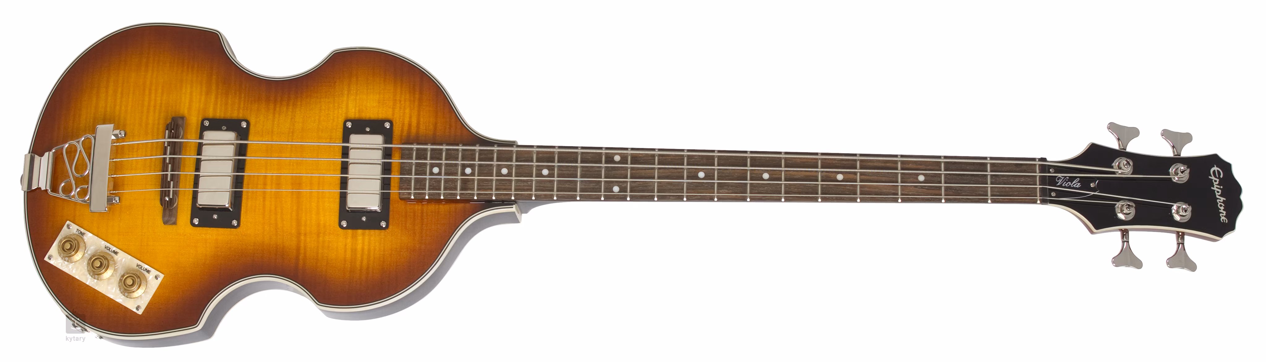 Basgitara Viola Bass od Epiphone okamžite pripomína legendárnu britskú kapelu The Beatles. Tento model je inšpirovaný basgitarou Höfner 500/1 Violin Bass, ktorá sa stala hlavným nástrojom Paula McCartneyho – práve preto sa často označuje ako „basgitara Beatles“. Replika Epiphone je ideálnou voľbou pre hráčov, ktorí hľadajú cenovo dostupnejšiu verziu tohto ikonického nástroja, ako aj pre každého, kto sa chce odlíšiť od davu. Zaujme svojím vzhľadom aj retro zvukom inšpirovaným nástrojmi z 60. rokov.