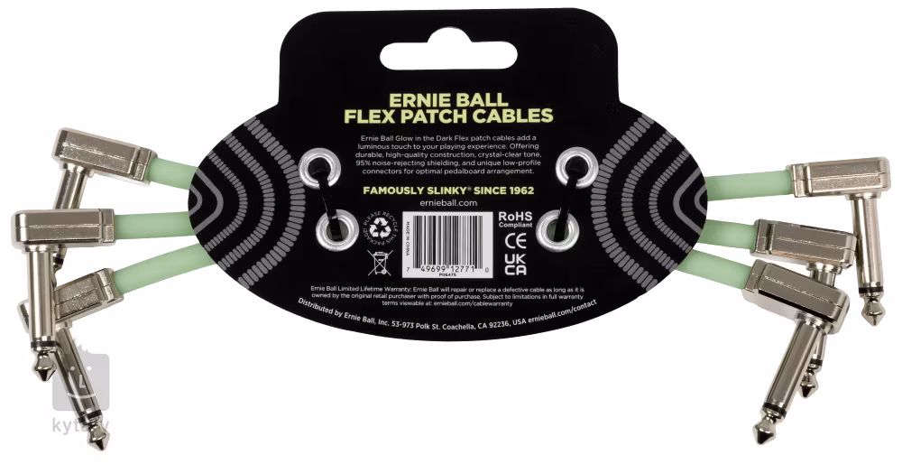 Interkonekty Ernie Ball zo série Flex sú výnimočne flexibilné a majú celokovové ploché konektory, takže sa ľahko zmestia medzi krabičky na vašom pedalboarde a nezaberajú miesto navyše. Ponúkajú 95 % tienenie, ktoré účinne eliminuje nežiaduci šum a zachováva čistotu signálu. Sú vyrobené z kvalitných komponentov a potiahnuté ochrannou vrstvou PVC, takže vydržia všetky nástrahy koncertných pódií a skúšobní. Vďaka tomu vydržia veľmi dlho. Model Glow in the Dark je navyše výnimočný, pretože v tme svieti. Ideálna voľba pre tých, ktorí chcú vyniknúť aj na zatemnenom pódiu.
