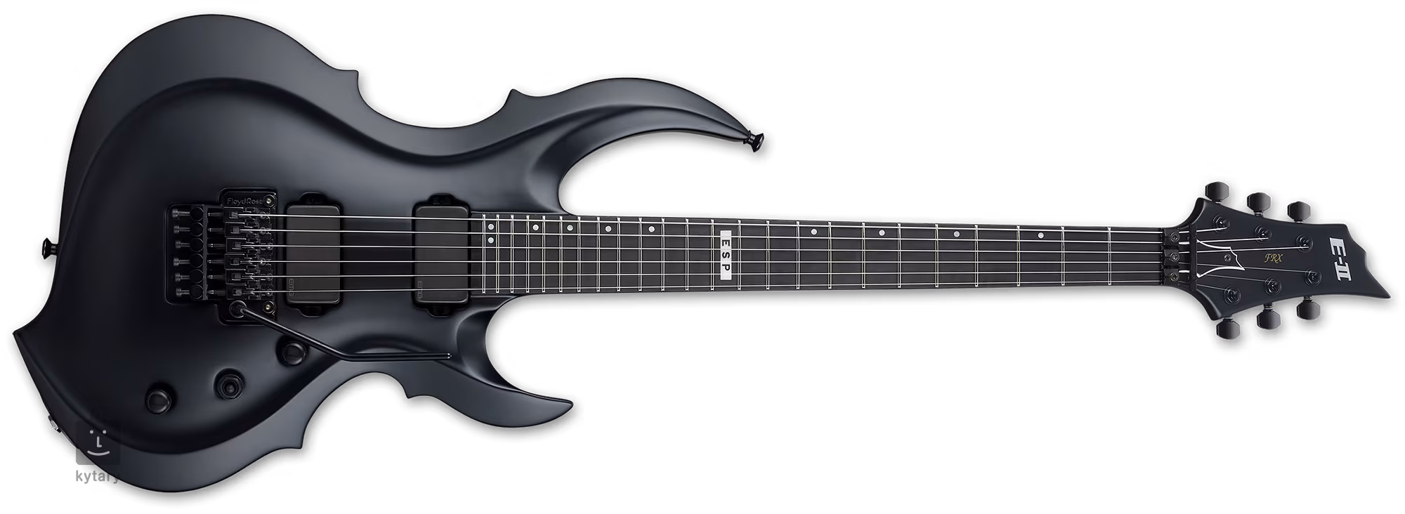 Elektrické gitary ESP FRX s charakteristickým hard & heavy dizajnom určite oslovia milovníkov metalu, tvrdších rockových žánrov a všeobecne hráčov, ktorí sa neboja vyčnievať z davu. Telo E-II FRX/BLK SATIN je vyrobené z jelše. Na trojdielny javorový krk s konštrukciou set-thru, teda krk zapustený hlboko do tela, nadväzuje ebenový hmatník osadený dvadsiatimi štyrmi pražcami typu Extra Jumbo. Orientáciu na jeho povrchu uľahčujú posunuté polohové bodky a intarzia ESP na dvanástom pražci.