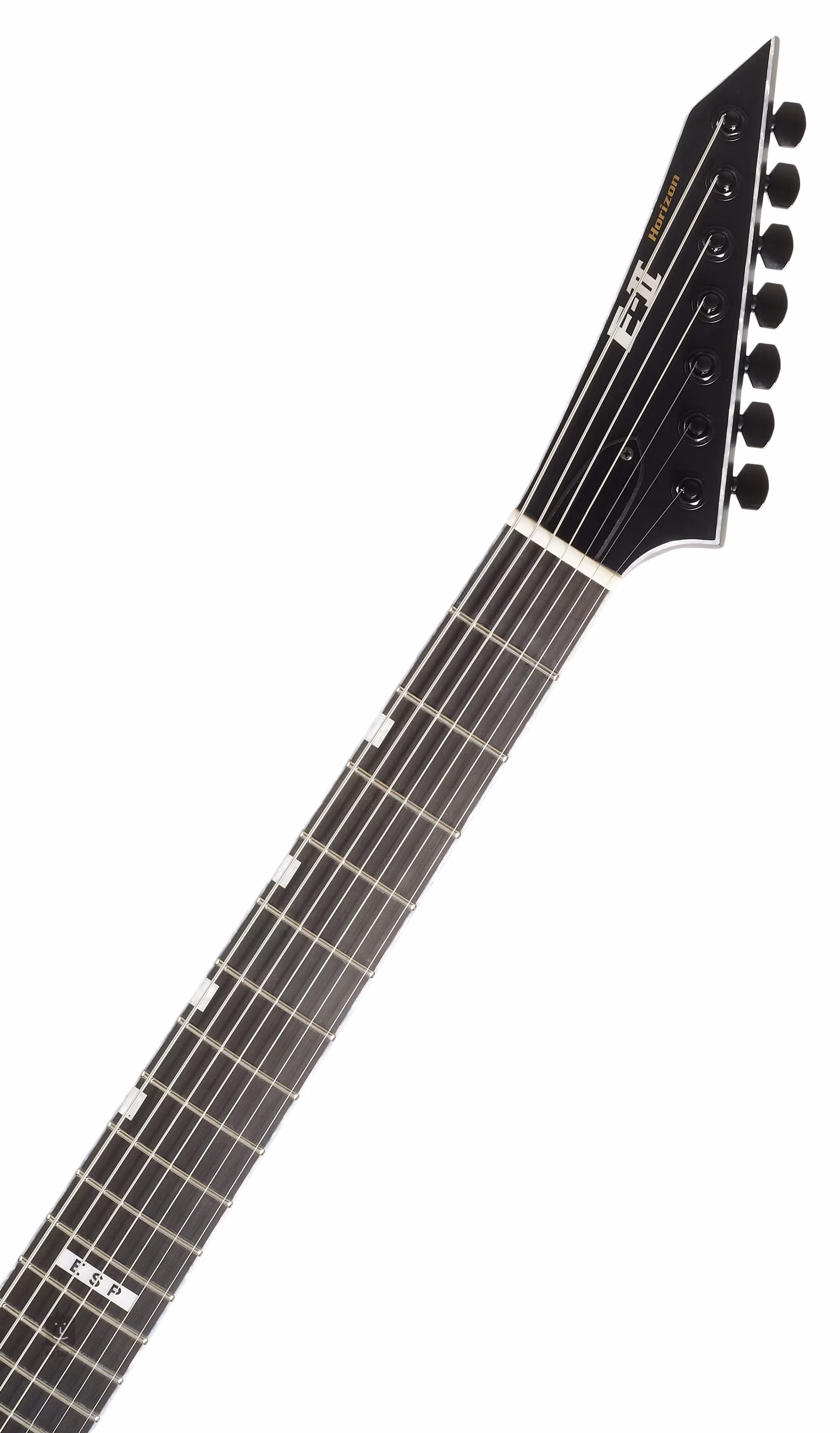Táto barytónová sedemstrunová elektrická gitara E-II Horizon NT-7B poteší všetkých milovníkov hutného zvuku. Vďaka otvoru 686 mm si poradí aj s extrémnymi podtónmi. Telo gitary je vyrobené z jelše. Trojdielny javorový krk s profilom Thin U je osadený ebenovým hmatníkom s dvadsiatimi štyrmi pražcami typu Extra Jumbo. Orientáciu na jeho povrchu uľahčujú perleťové polohovacie bloky.