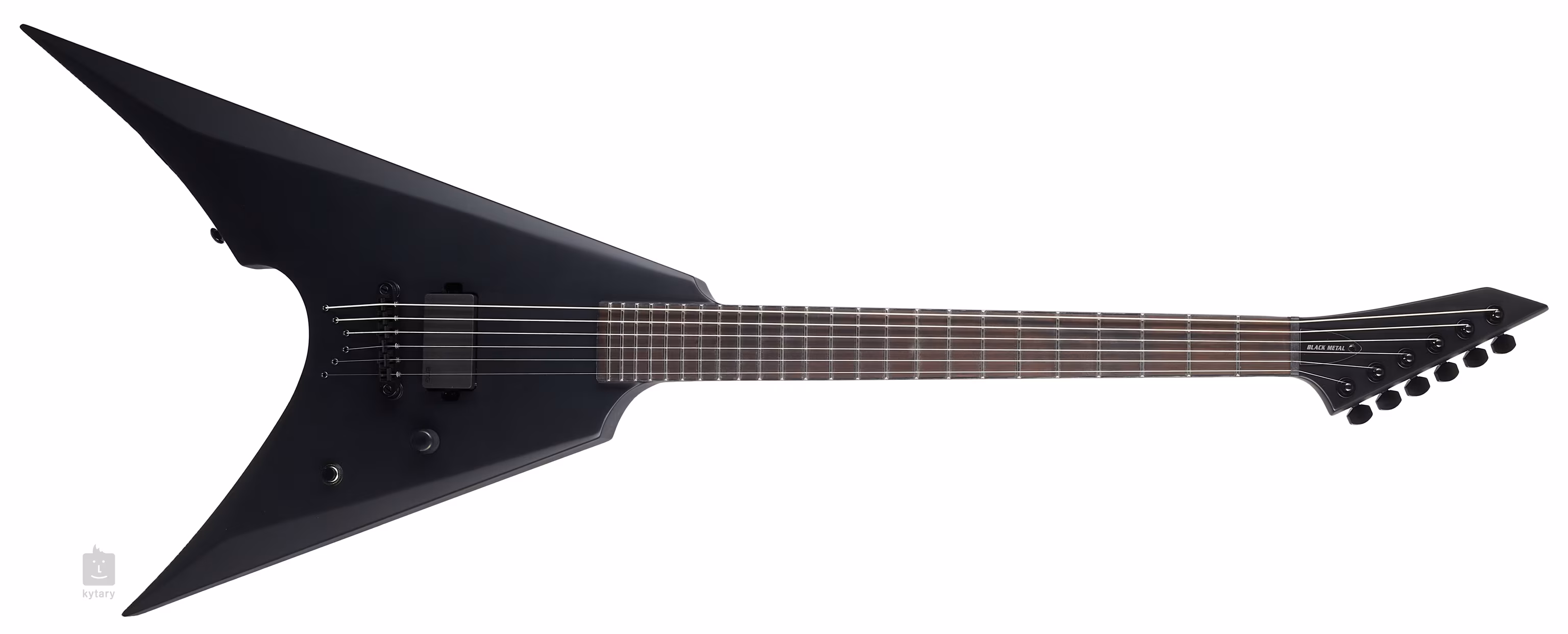 "V" konštrukcia Arrow-NT Black Metal pozostáva z mahagónových krídel a trojdielneho javorového prierezového krku s užším, rýchlym profilom Thin U. Povrch hmatníka z ebenového makasaru rozdeľuje dvadsaťštyri pražcov Extra Jumbo z nehrdzavejúcej ocele.