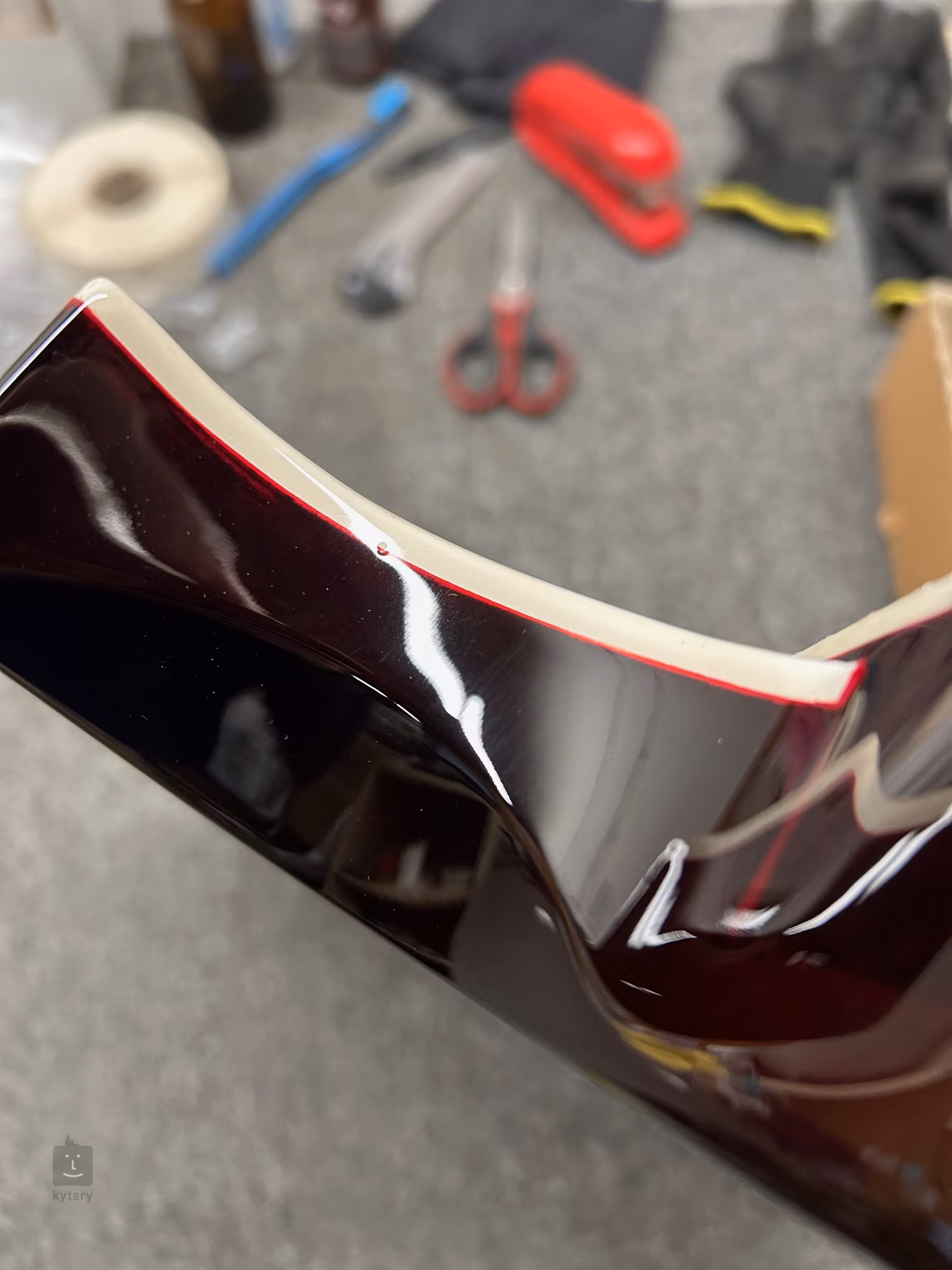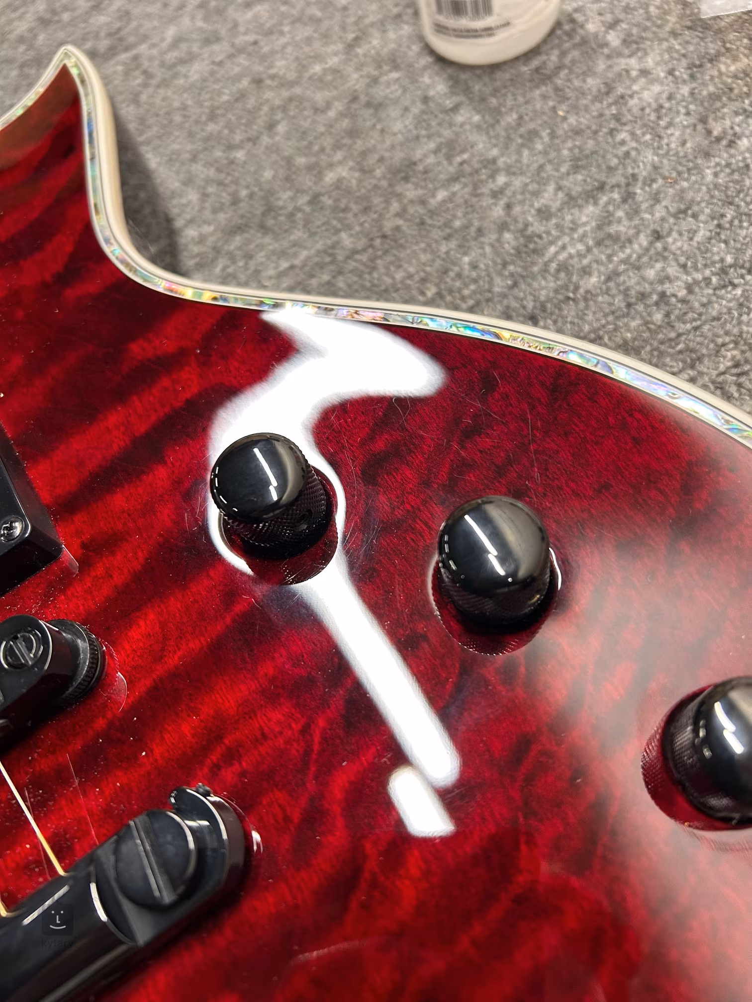 Mahagónové telo tejto gitary zdobí vrchná dýha z vločkového javora s pôsobivou kresbou. Ozdobná perleťová väzba gitary príjemne kontrastuje s farebným prevedením nástroja. Na trojdielny mahagónový krk s konštrukciou set-thru, t. j. krk zapustený hlboko do tela, nadväzuje ebenový hmatník Macassar osadený dvadsiatimi štyrmi pražcami Extra Jumbo z nehrdzavejúcej ocele. Orientáciu uľahčujú perleťové polohové bloky.