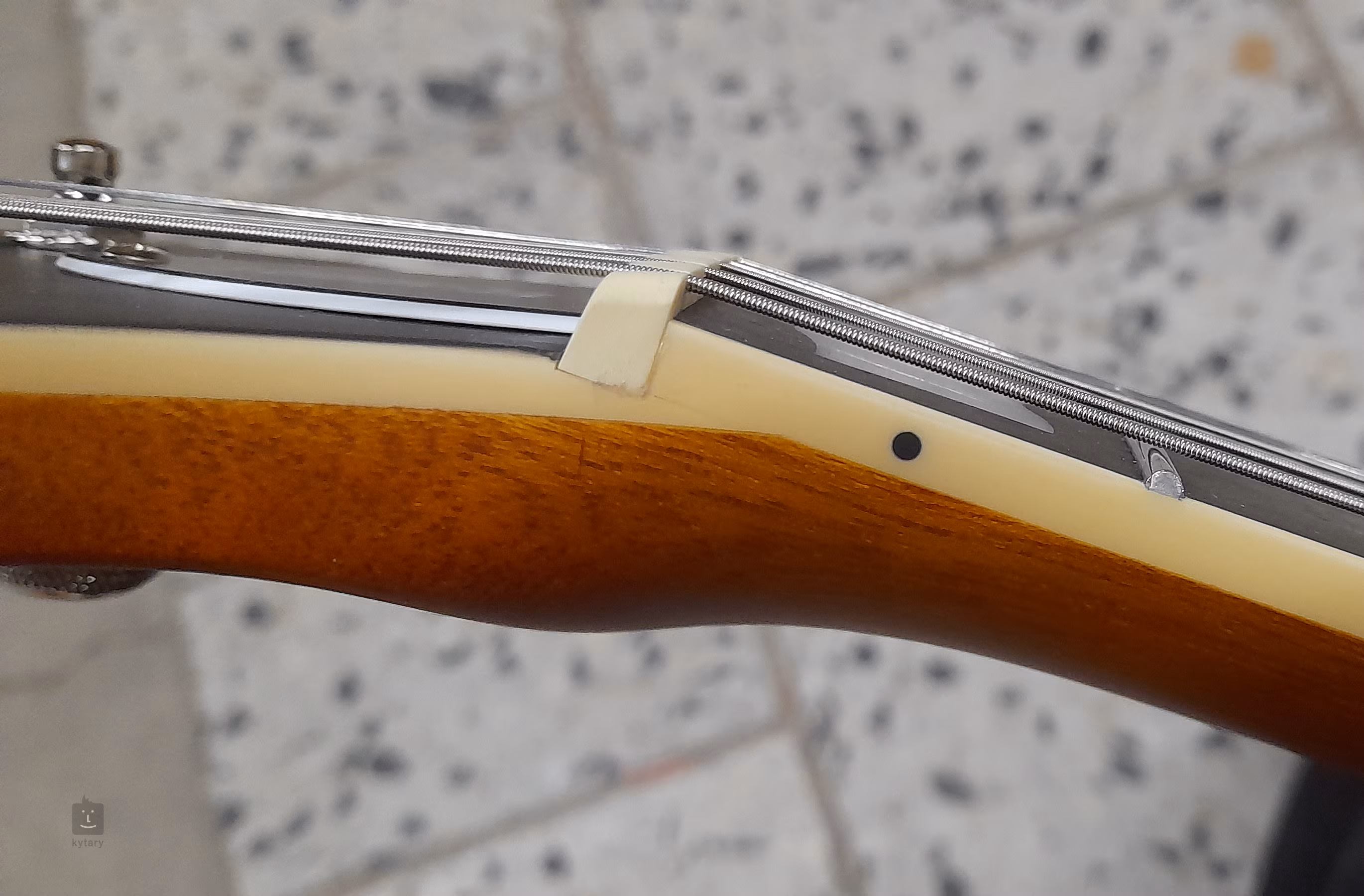 Struny sú upevnené v kvalitných uzamykateľných ladiacich mechanikách a pevnom mostíku a strunníku Tonepros Locking TOM.