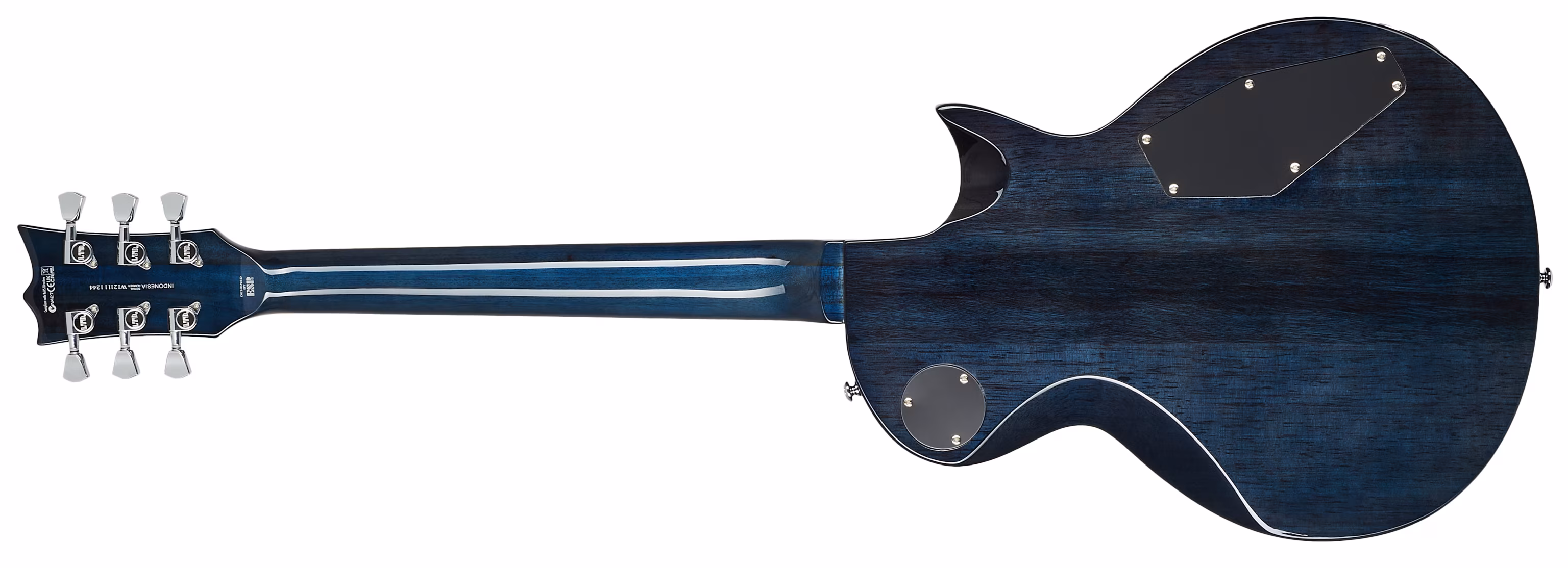 Mahagónové telo ľavorukého modelu EC-256 CB LH zdobí efektná dýha z fládrovaného javora. Trojdielny mahagónový krk je prilepený k telu. Dvadsaťdva pražcov Extra Jumbo rozdeľuje hmatník z jatoby, známej ako brazílska čerešňa. Orientáciu na jeho povrchu uľahčujú polohové bloky.