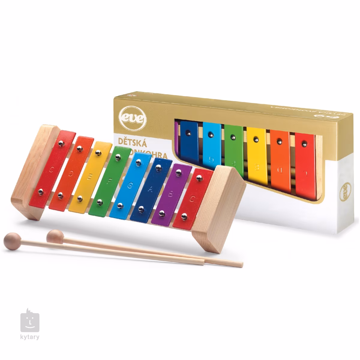Metalofon s osmi barevnými kameny. V atraktivním balení. Součástí je zpěvníček pro zvonkohru.