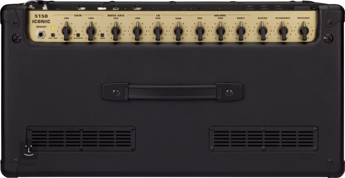 5150 Iconic Series 40W EL34 1x12 Combo Black ponúka úderný lampový zvuk EVH za dostupnejšiu cenu. Ide o dvojkanálové, 40-wattové kombo vybavené na mieru vyrobeným 12-palcovým reproduktorom Celestion, dvojicou elektrónok ECC83 v predzosilňovači a dvoma koncovými elektrónkami EL34.