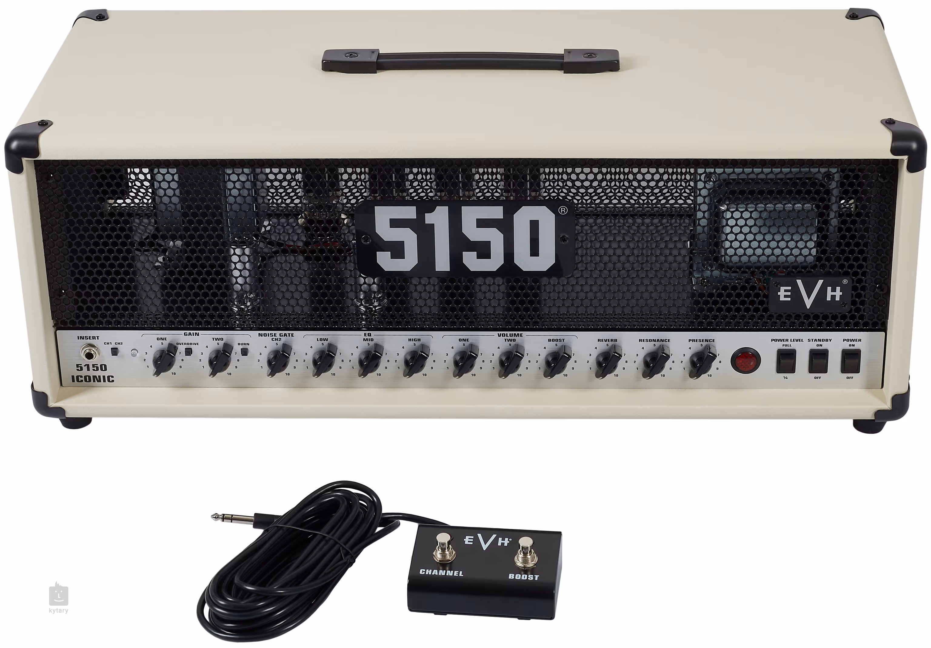 Dvojkanálový gitarový lampový zosilňovač EVH 5150 Iconic 80W Head Ivory ponúka charakteristický lampový zvuk EVH za dostupnejšiu cenu. Dva kanály, označené ako Green a Red, ponúkajú čistý zvuk kanála Green a klasické vysokoziskové skreslenie kanála Red. Model 5150 je však predovšetkým obľúbeným „pílom“ alebo „bagrom“ pre metalistov a rockerov, takže môžete použiť prepínač Overdrive na kanáli Green na vytvorenie druhého kanála s vysokým zosilnením a prepínač Burn na kanáli Red na posunutie zvuku do sféry ešte väčšieho ultra vysokého zosilnenia. Ale je to vôbec povolené?