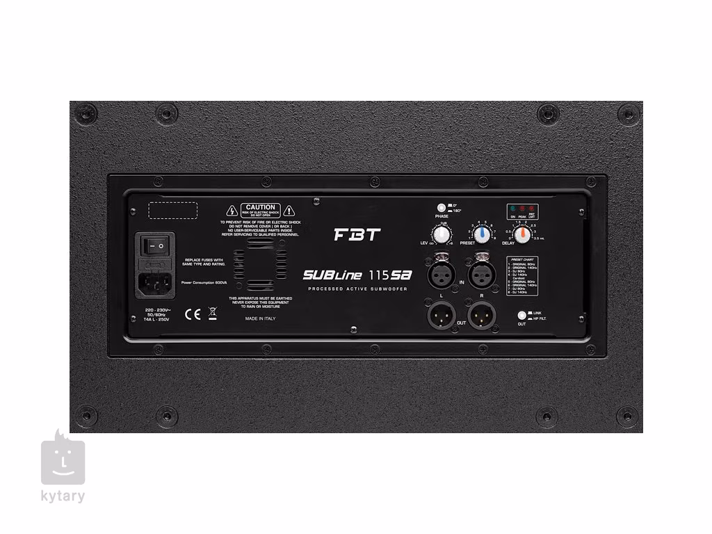 FBT SUBLINE 115 SA je aktívny dvojpásmový subwoofer s bassreflexom, zosilňovačom triedy D, 15-palcovým reproduktorom, maximálnym výkonom 700 W RMS, vysokým akustickým tlakom, DSP s ôsmimi predvoľbami, dvoma ekvalizáciami, dvoma nastaveniami LPF crossoveru a kardioidnou konfiguráciou. Subwoofer je vybavený aj adaptérom M20 na pripojenie reproduktorov/satelitov a dvoma hliníkovými ergonomickými rukoväťami na jednoduchú manipuláciu so subwooferom. Konštrukcia je vyrobená z 15 mm hrubej brezovej preglejky.