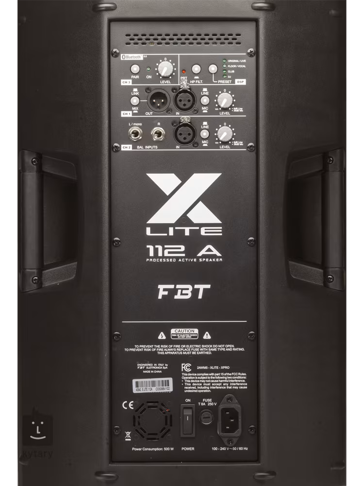 X-Lite 112A je dvojpásmový aktívny reproduktor s 12" basovým reproduktorom a 1" výškovým reproduktorom, ktoré spolu so zosilňovačom triedy D poskytujú maximálny výkon až 1500 W. Reproduktor obsahuje kvalitný a používateľsky prívetivý procesor DSP so štyrmi prednastavenými ekvalizérmi. Zadný panel ponúka flexibilné možnosti pripojenia v podobe vstupov XLR, 6,3 mm Jack a Bluetooth so samostatným ovládaním hlasitosti. Výstup XLR potom umožňuje pripojenie k inému PA systému. Nájdete tu aj prepínače filtra HP On/Off, prepínač Mic/Line a DSP.