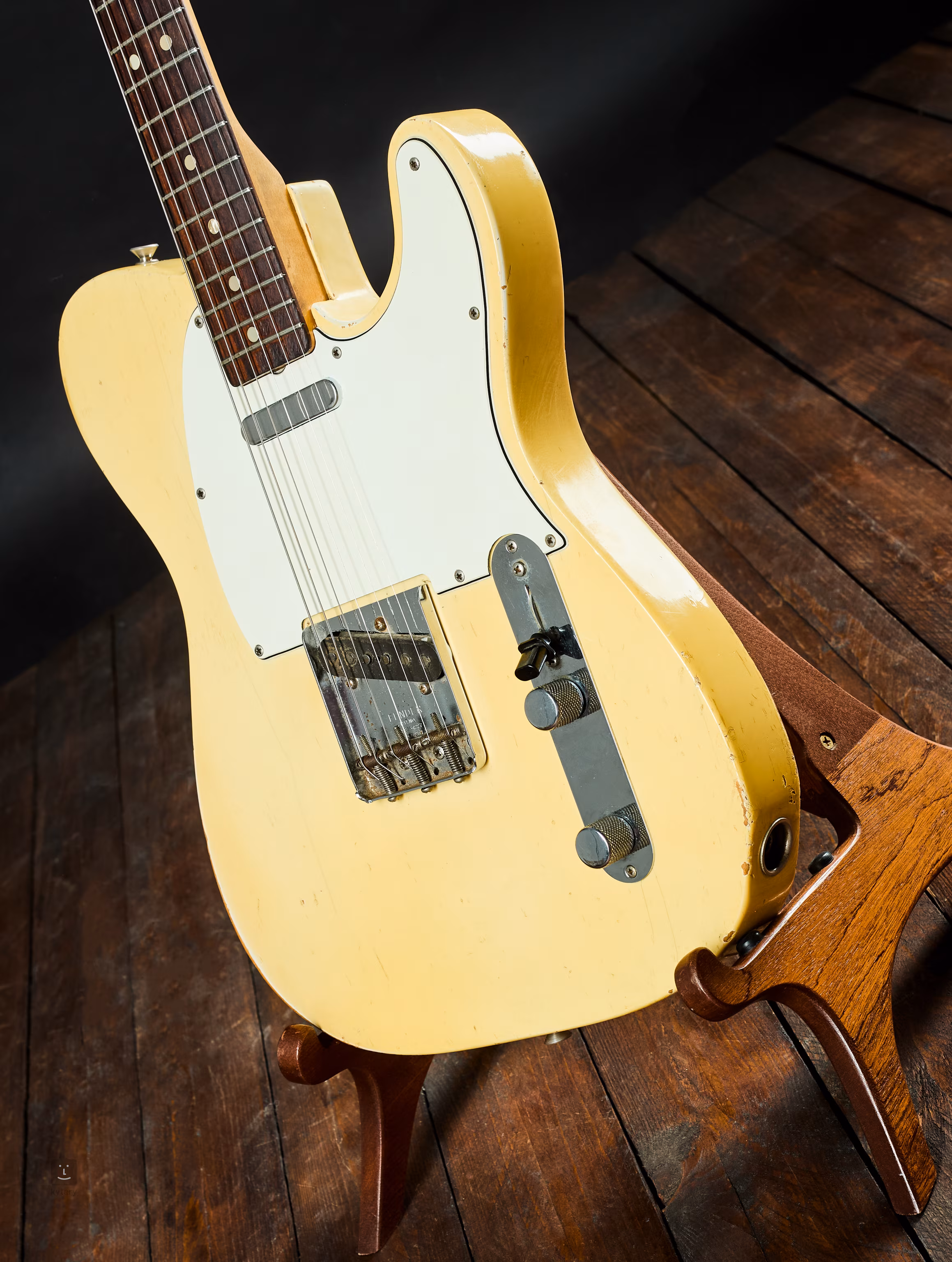 Zberateľský artefakt. Originálny telecaster z prelomu rokov 1967 - 1968 v pôvodnej bielej transparentnej farbe, stále kompletne v nitrolaku! Plne hrateľný nástroj pre zberateľov a pokročilých hráčov..
