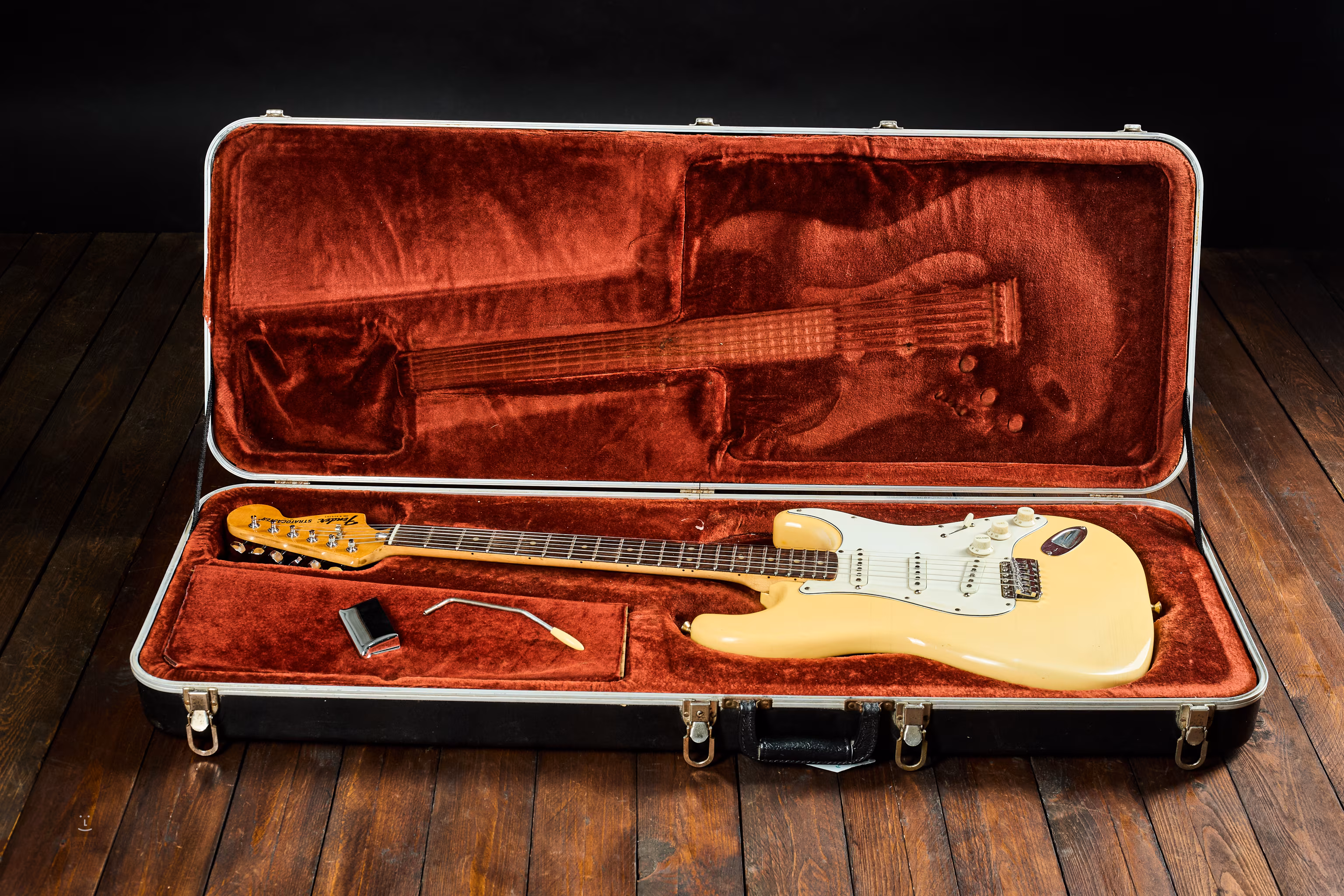 Potenciometre sú z roku 1978 a nástroj sa dodáva s pôvodným plastovým puzdrom Fender, pickguardom a pákou.