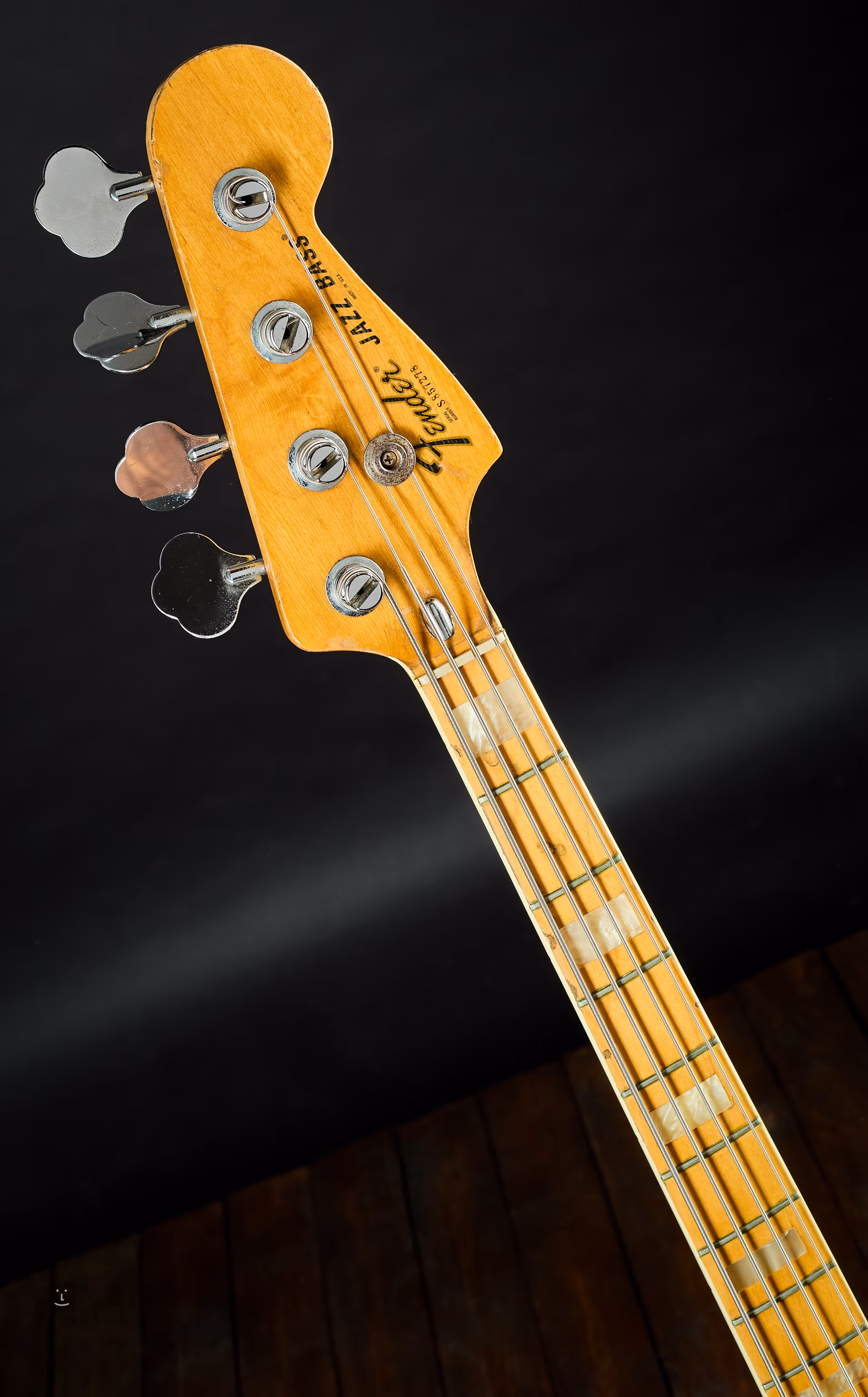 Všetko na tomto Jazz Basse z roku 1980 je pôvodné okrem novej samice jacku. Kapsa krku bola v minulosti z oboch strán obložená dyhou, čo vyriešilo neduhy občasného nepresného lícovania krku.