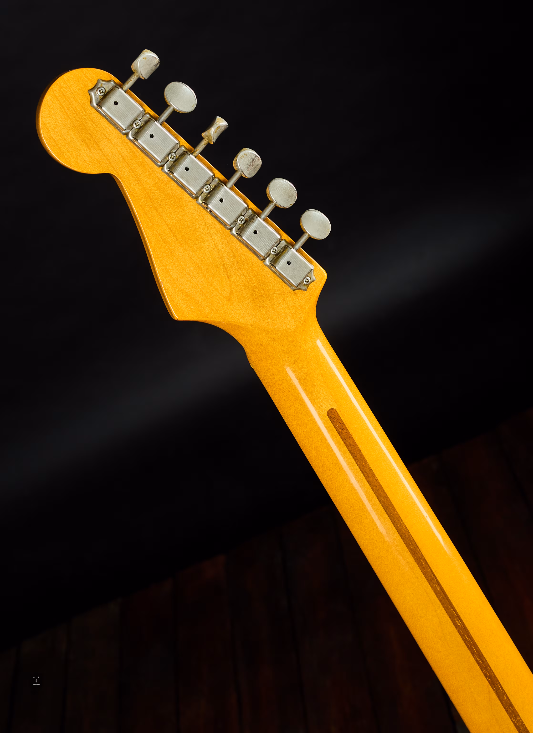 Telo z basového dreva; javorový krk. Snímače 3x single Japanese vintage; ladiace mechaniky zo 60. rokov.