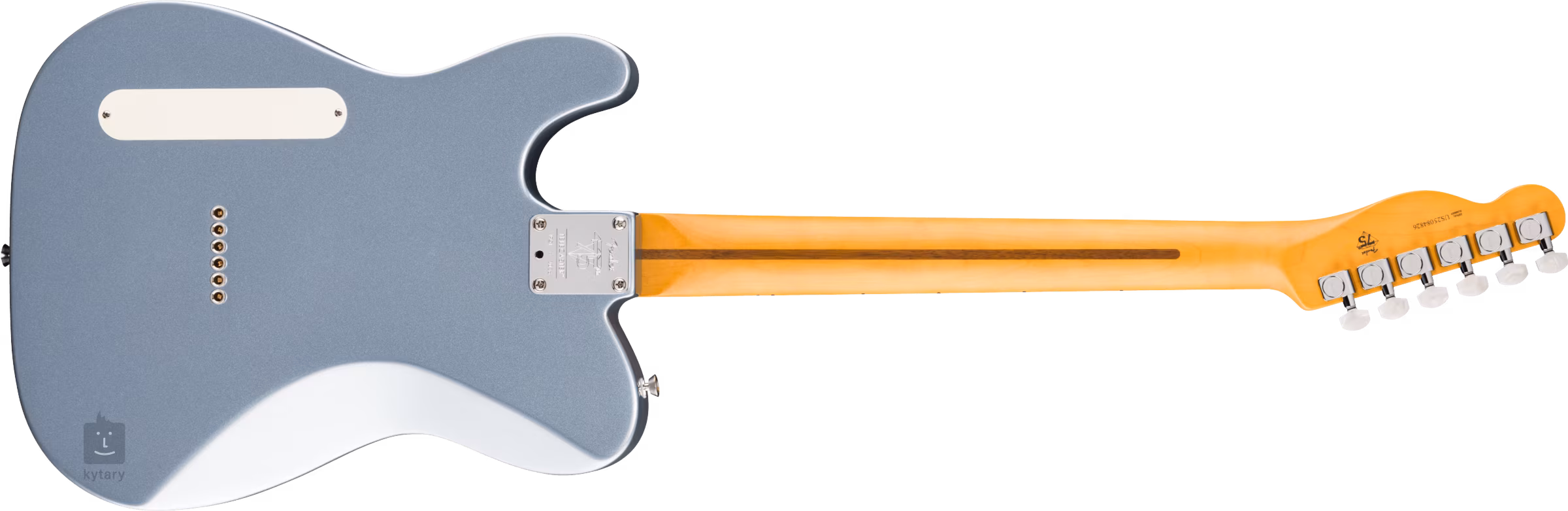 Telo z jelše je povrchovo upravené lesklým polyuretánovým lakom a charakteristickou povrchovou úpravou Fender Ice Blue Metallic. Javorový krk má ergonomický moderný profil „C“ a hmatník je vybavený dvadsiatimi dvoma pražcami Medium Jumbo.