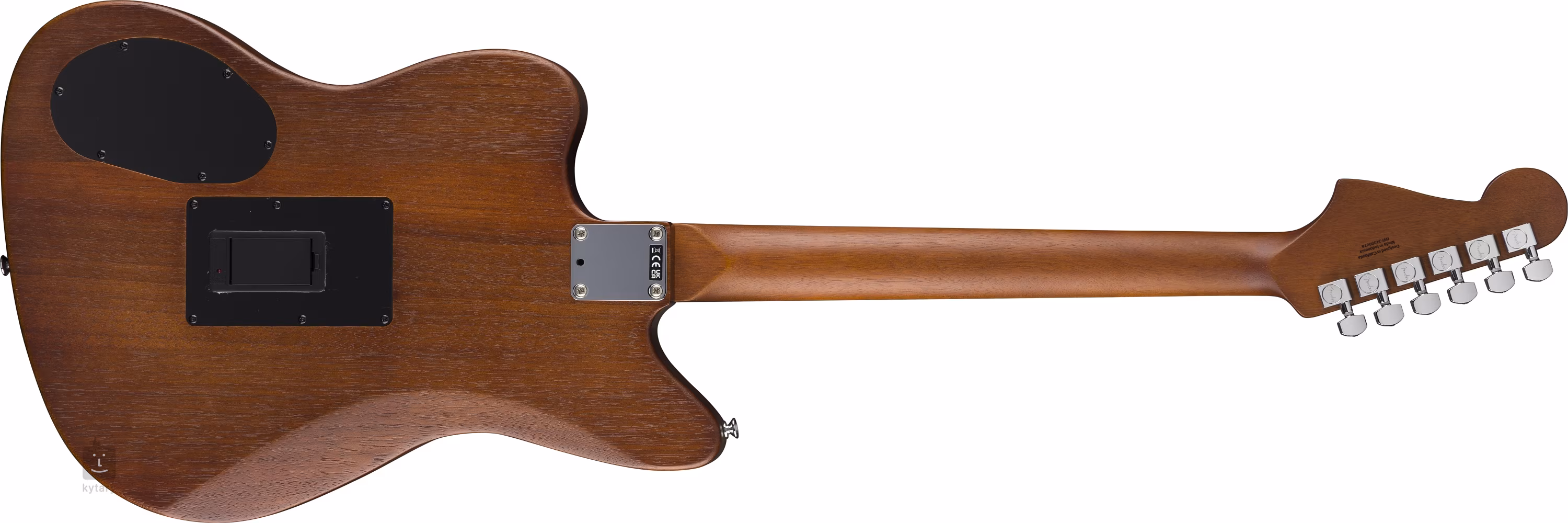 Fender Acoustasonic Standard Jazzmaster HBT už na prvý pohľad zaujme skvelým dizajnom a hernými vlastnosťami odvodenými od elektrických gitár typu Jazzmaster aj akustických nástrojov. Úzke komorované telo z dreva nyatoh a masívna rezonančná doska zo smreka Sitka ponúkajú prirodzený objem a rezonanciu akustických gitár. Gitara tak bude dobre hrať "unplugged" vo vašej obývačke, jej skutočné prednosti však vyniknú až pri zosilnení. Opierka na ruku a výrez "belly cut" na zadnej strane tela zaručujú pohodlie pri hraní aj pri dlhom sedení pri gitare.