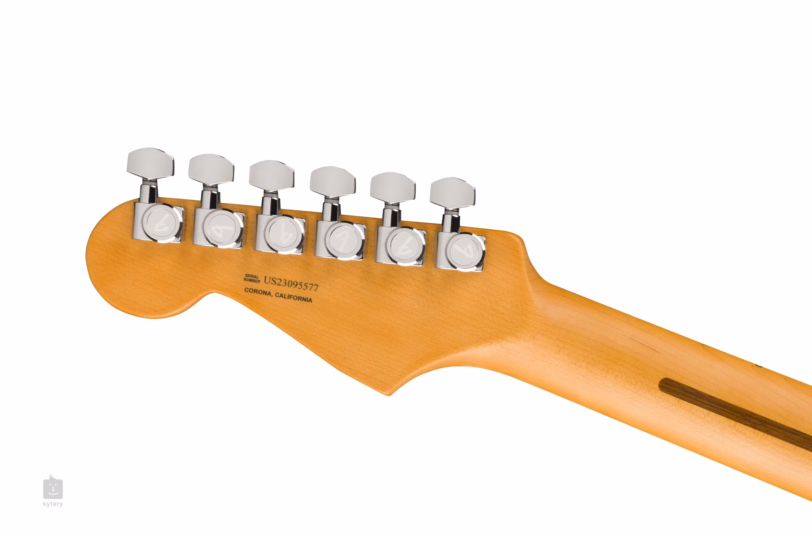 Olšové telo modelu American Ultra II Stratocaster HSS MN SFL ponúka tradičné prvky série American Ultra v podobe ergonomických výrezov na tele a skosenej päty krku, ktoré poskytujú ideálny povrch aj pri vyšších polohách hmatníka. Javorový krk s profilom "Modern D", teda užším krkom so širšími ramenami, zaoblenými hranami hmatníka, rádiusom hmatníka (10" - 14") a dvadsiatimi dvoma Medium Jumbo pražcami zaručujú pohodlnú hru akordov pri nultom pražci aj komfortné vykonávanie rýchlych sól (shred). Svietiace bodky na bočnej strane hmatníka uľahčujú orientáciu aj za šera.