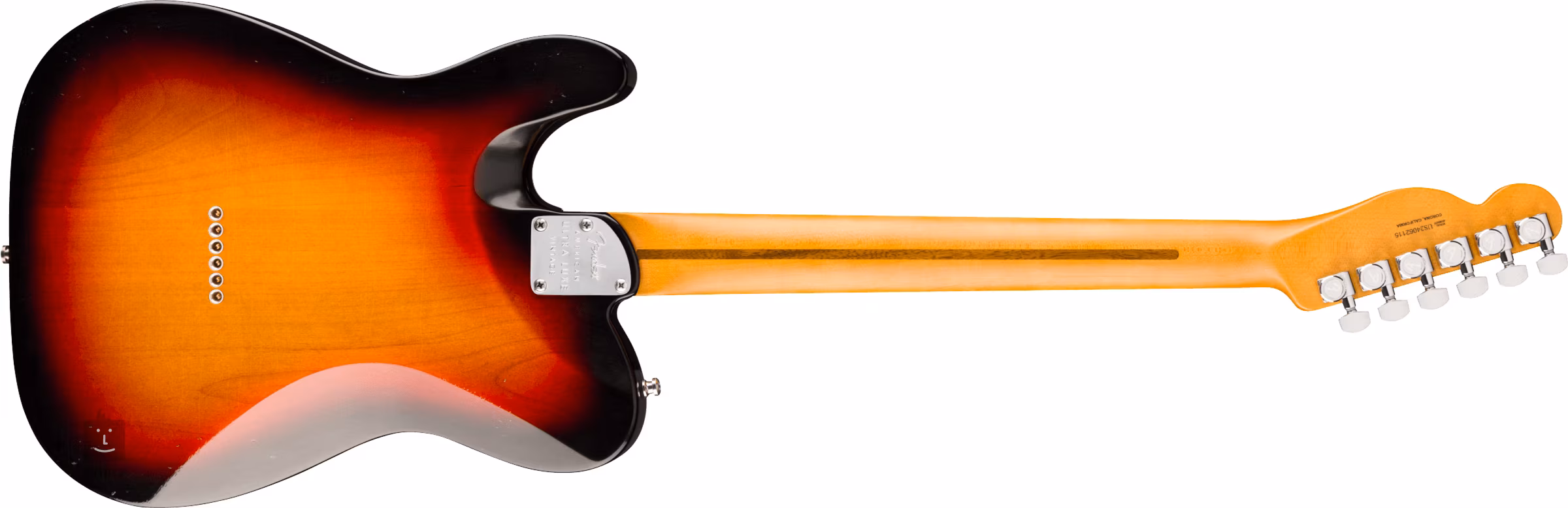 Telo elektrickej gitary American Ultra Luxe 60s Telecaster Custom RW 3TS z jelše je zdobené jemným antickým nitrocelulózovým lakom (Heirloom lacquer). Prišraubovaný javorový krk s moderným profilom „D“, t. j. úzky krk so širšími ramenami, poskytuje ideálnu platformu pre akýkoľvek štýl alebo techniku hry. Pohodlie pri hraní zvyšujú prvky ako elegantne tvarovaná zadná časť tela a skosená pätka krku.