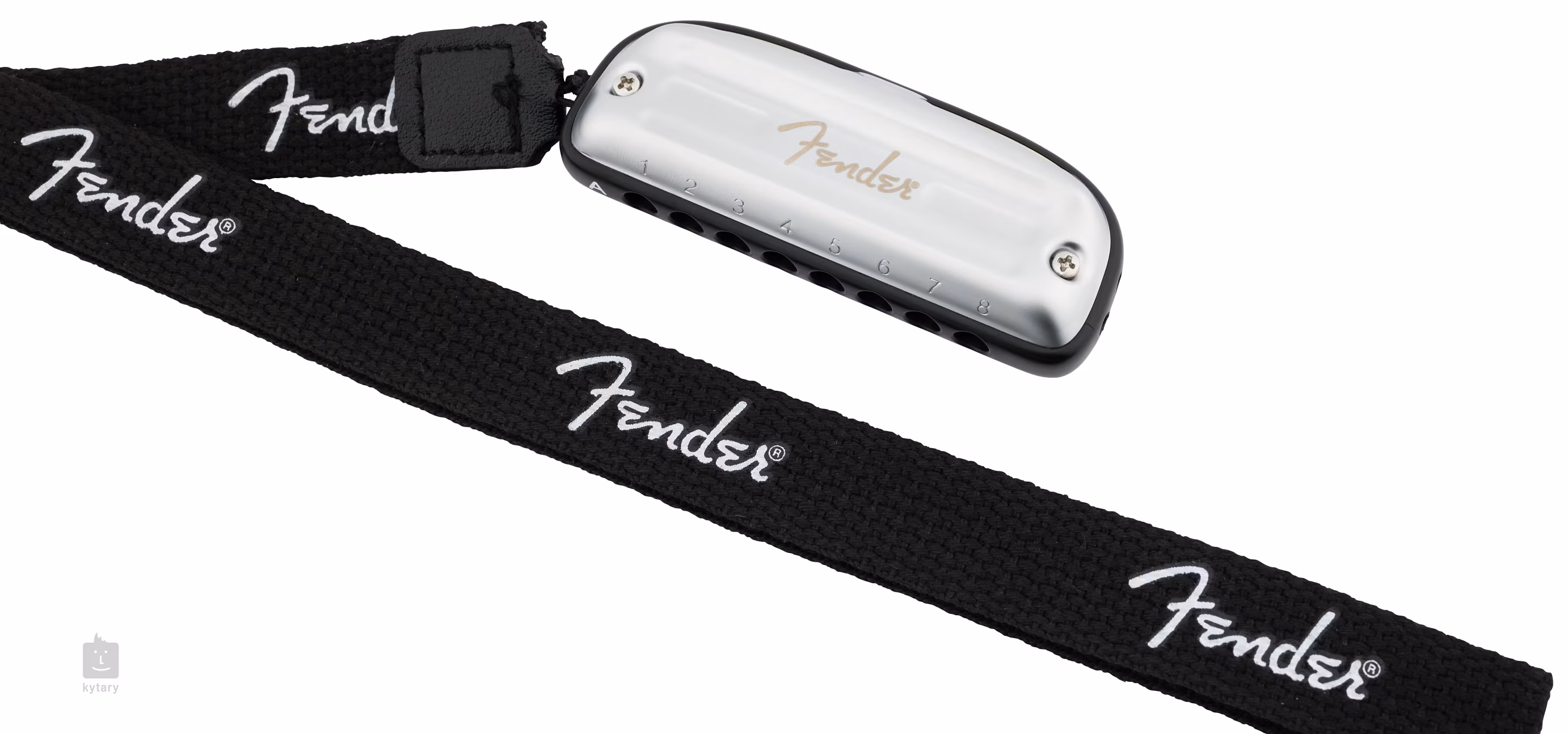 Harmonika je pripevnená k remienku s logom Fender a dodáva sa s puzdrom na prenášanie a handričkou.