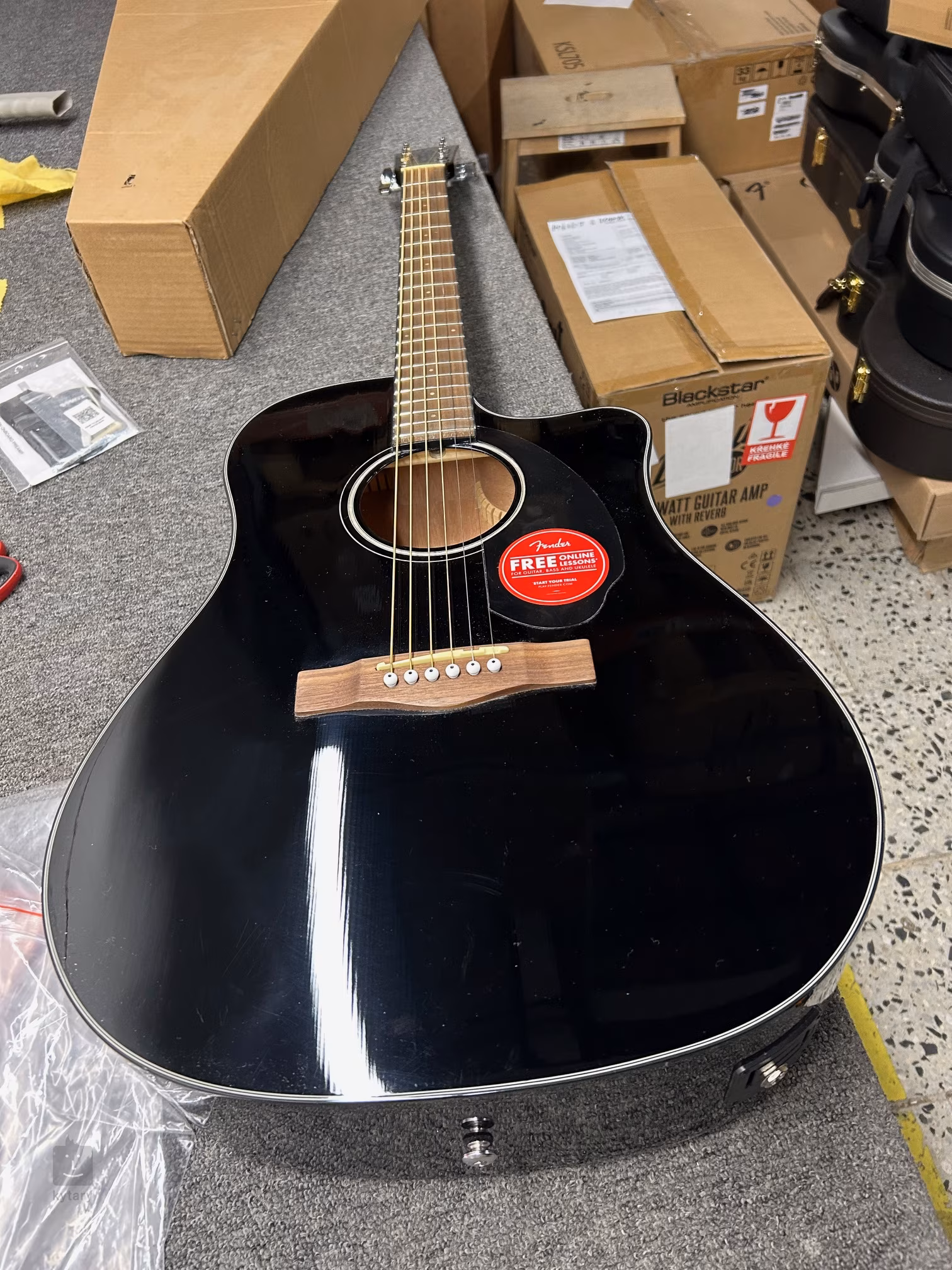 Elektroakustická gitara Fender CD-60SCE BLK ponúka bohatý a hlasný zvuk veľkého rezonančného tela populárnych gitár typu Dreadnought. Je to ideálny nástroj pre začiatočníkov a skúsených gitaristov, ktorí hľadajú kvalitne spracovanú, cenovo dostupnú akustickú gitaru bez zbytočných doplnkov.