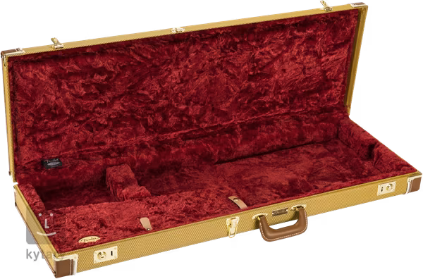 Toto puzdro je určené pre gitary Fender Stratocaster alebo Telecaster v pravorukej aj ľavorukej verzii, ale možno ho použiť aj pre iné modely rovnakej veľkosti. Vyrobené z kvalitných komponentov, ktoré zaručia vášmu nástroju maximálnu ochranu za každých okolností. Drevená konštrukcia potiahnutá tvídom je doplnená rukoväťou a rohmi, interiér je vystlaný červeným plyšom a hardvér je pochrómovaný. Vo vnútri puzdra sa nachádza úložný priestor na drobné príslušenstvo (ladička, káble, trsátka, náhradné struny).