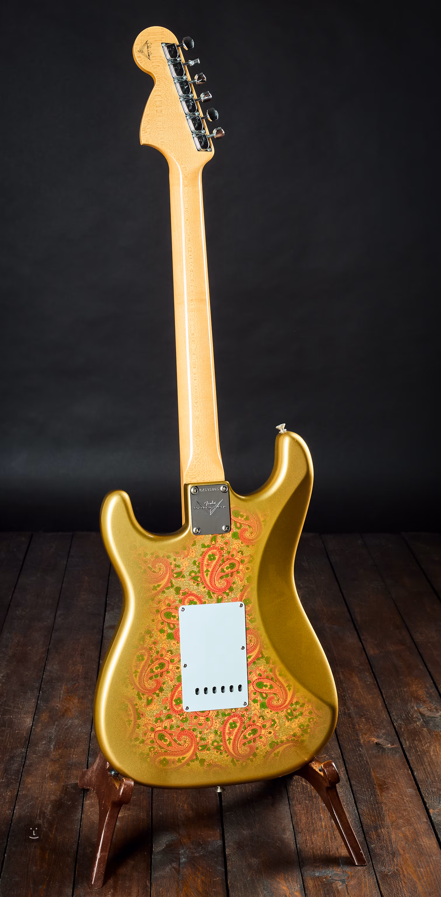 Nástroj má niekoľko menších, iba kozmetických stôp po predchádzajúcom používaní: na hornej strane tela; pri spoji krku; okolo zadného krytu tremola a na konci hlavice. Predáva sa vrátane originálneho kufra, v ktorom nájdete všetko originálne príslušenstvo (certifikáty, páku, katalóg, pružiny, kryt kobylky, kožený popruh Fender Custom Shop).