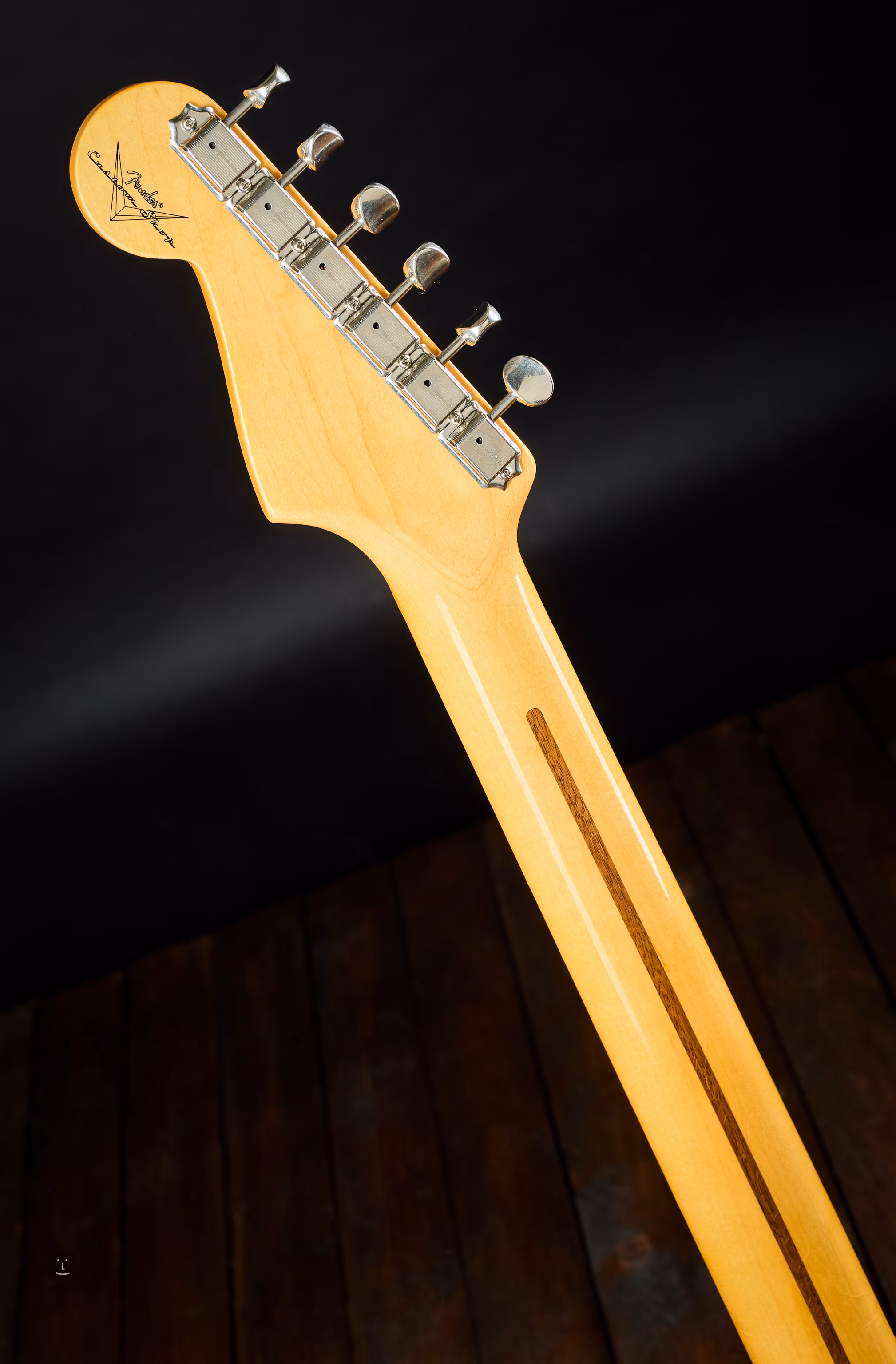 Tento Stratocaster z roku 1955 v prevedení Deluxe Closet Classic (LCC), ktorý už vyšiel z Fender Custom Shopu, je jemne patinovaný nástroj s drobnými falošnými prasklinami, ktoré spolu s použitými materiálmi a dobovými snímačmi navodzujú atmosféru 50. rokov minulého storočia, kedy vznikol tento legendárny model elektrickej gitary, ktorý definoval svet popovej a rockovej hudby.